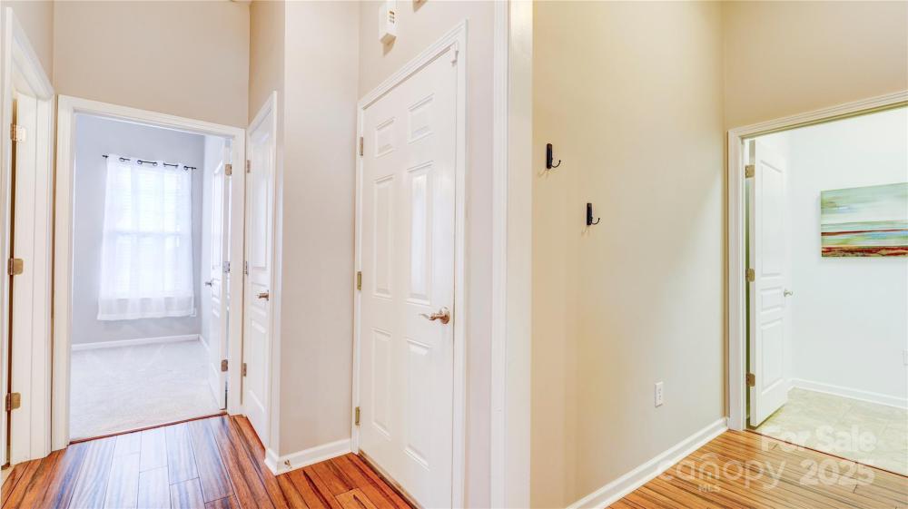 Convenient, one-level living in this end unit in Waters Edge. Inside, a foyer opens to a welcoming living room with a gas-log fireplace. It flows into the dining area and spacious kitchen, which offers a breakfast bar, solid-surface countertops, and access to the fenced back courtyard with garden beds. The primary bedroom features a tray ceiling and an ensuite bath with a soaking tub, separate shower, dual vanities, private water closet, and large walk-in closet. A second bedroom sits at the front of the home, adjacent to the hall bath. There’s also a full laundry room and a versatile flex/study space with built-in shelving and desk. Enjoy new carpet in the bedrooms and laminate wood flooring throughout the main living areas. The home also includes a level-entry one-car garage, driveway parking, and nearby guest parking. Community amenities include a pool, and the location can’t be beat. $5000 seller credit with acceptable offer by 2/28. Welcome home!