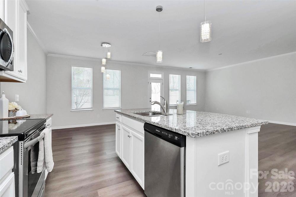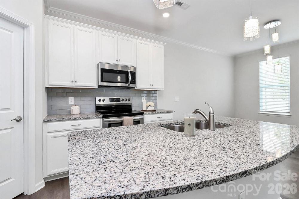 MOTIVATED SELLER – OWNER FINANCING AVAILABLE! DEEDED BOAT SLIP Beautiful townhome with a deeded boat slip in the highly desirable Waters Edge community! Enjoy lakeside living at its best in this move-in-ready, open-concept townhome located just minutes from I-85 and everything the Lake Wylie area has to offer. With a motivated seller and owner financing available, this is a rare opportunity to secure flexible terms in a sought-after community. This spacious 4-bedroom, 3-bath home features wood flooring throughout the main level, elegant designer lighting, and a fully fenced backyard with a custom-built retaining wall. The gourmet kitchen is ideal for entertaining and showcases 42” shaker cabinets, granite countertops, subway tile backsplash, stainless steel appliances (refrigerator included), and an oversized island with seating. The main level offers excellent flexibility with a guest bedroom or home office and a full bath. Upstairs, the primary suite impresses with tray ceilings, a dual-sink vanity with quartz countertops, and a large walk-in closet. Two additional bedrooms, a full guest bath, and a convenient laundry room (washer and dryer included) complete the upper level. Relax and enjoy low-maintenance living—the HOA covers water and lawn care, eliminating a water bill. Best of all, the home includes a deeded boat slip on Lake Wylie, providing easy access to both North and South Carolina waters. Waters Edge offers an unbeatable location close to restaurants, shopping, the new hospital, the Whitewater Center, Crowders Mountain, and more. With owner financing available and a motivated seller, this home stands out as an exceptional value in today’s market.
