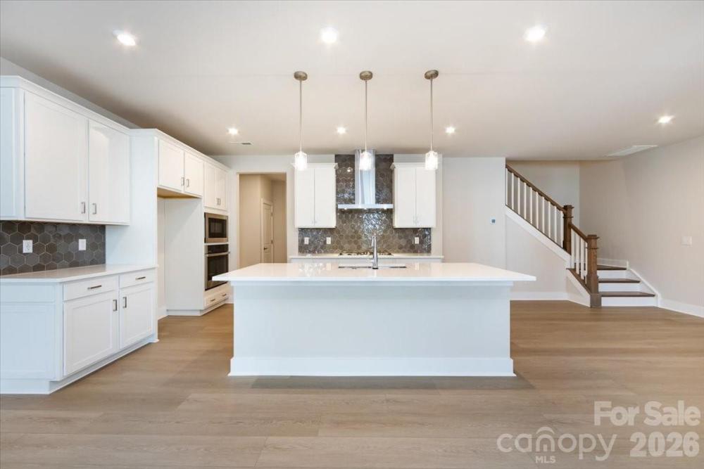 This home offers a bright, open-concept layout anchored by a stunning oak box staircase, creating a warm and inviting flow throughout. The white gourmet kitchen with quartz countertops, hood range, and expansive walk-in pantry makes everyday life and entertaining effortless, while a sliding glass door opens to a covered outdoor living space perfect for relaxing or gathering with friends. The primary bathroom feels like a private retreat, featuring a luxurious walk-in shower, charcoal black tile, and Nightfall quartz countertops for an elevated, modern touch. Steps from lakeside fun and with easy access to major commutes, this home pairs lake life living with convenience, enhanced by a community pavilion with green space, lounge areas, and grills.