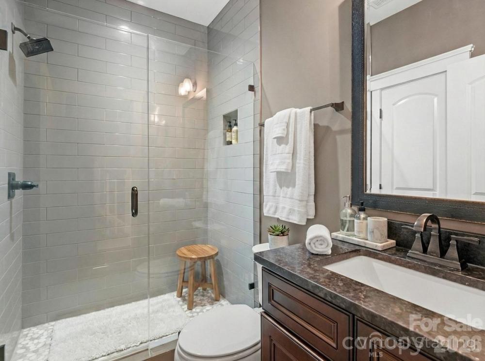 Welcome Home to Belmont Reserve! This beautiful 3 Bedroom / 3 Full Bathroom brick townhome, with an Attached 2-Car Garage is Move in Ready! A New Trane HVAC was Installed Feb. 2026! Belmont Reserve offers paved Sidewalks and Streetlighting through-out this established Community. Just a short walk or quick drive to downtown Historical Belmont that offers a row and blocks of Restaurants and Shops. Also close by is Stowe Park & Botanical Gardens, Davis Park, Rocky Branch Park, the Swim Club and nearby Pickleball Courts. At 308 Rosemont you step through your custom entry door to the foyer and main level living, with beautiful rich hardwood floors and deep crown molding. Offering an open floorplan through-out the Kitchen, a center island / breakfast bar, to the Living Area; as well as wall space that makes for a great space for a bistro or dining table. The spacious Chefs Kitchen has great cabinet space, and the Countertops and Island all have leathered Granite. Escape to your private back patio enclosed with brick walls and cobblestone pavers; (The grass turf portion can remain or be removed if you prefer. There are cobblestone pavers in place within the full patio). The backyard / patio opens to the rear of unit through your personal privacy gate, (An iron gate is available if buyer prefers). The Main Level Bedroom connects to a full bath and offers a walk-in closet. Could be a 2nd Master on the Main or a 2nd Living Space; the Seller used as a Den / Sitting / TV Room. Upstairs custom sliding barn doors welcome you to the Primary Suite! Enter the Primary Bedroom through the sliding barn doors to the Master Suite featuring a large Walk-in Closet of the Bathroom, a private Water Closet, and an oversized Tiled Shower with glass doors. The shower offers seats and shower heads at each end. All 3 Full Bathrooms offer Tile Floors, Tiled Showers and Leathered Granite Countertops. Spacious coat closet by front door has access to additional storage under the stairwell. The rear 2 Car Garage is attached with inside access to the Living Area and Kitchen. The Garage is finished with painted floor and spacious to provide additional storage space to sides. The Mailbox is right behind the unit in the grassy island. This Location is central to Parks, Gastonia & Charlotte, the US National Whitewater Center, Belmont Abbey College, and Only a 15min. drive (7.6 Miles) to Charlotte Douglas Int, Airport and 22 minutes to Charlotte Center City / Uptown. Schedule Your Tour Today!