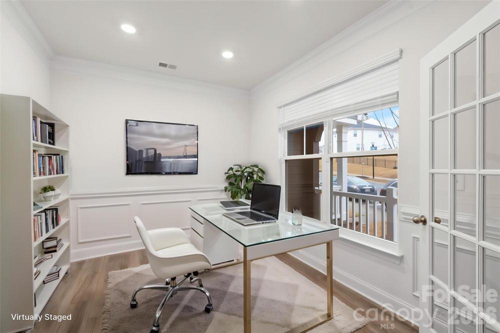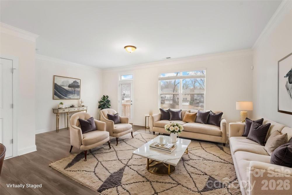 Modern style, flexible living, and exceptional walkability define this impeccably maintained 2021 built townhome in Laurel Walk. This 3 bedroom, 2.5 bath home offers a functional open layout and thoughtful upgrades throughout. Natural light fills the main level, enhanced by luxury vinyl plank flooring. A front room with French doors provides ideal flexibility as a dining room, private office, or den.