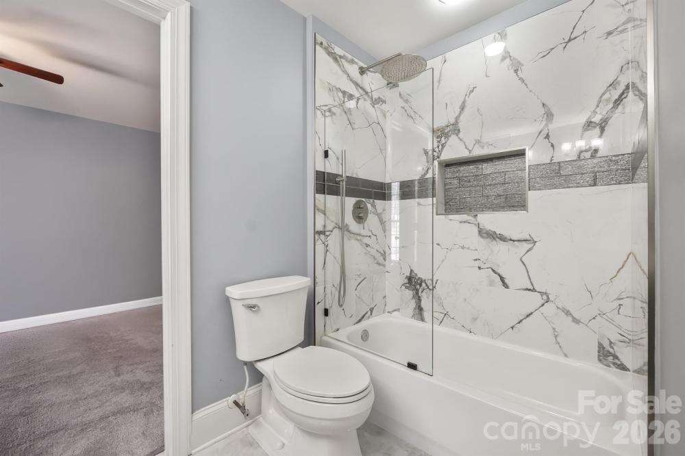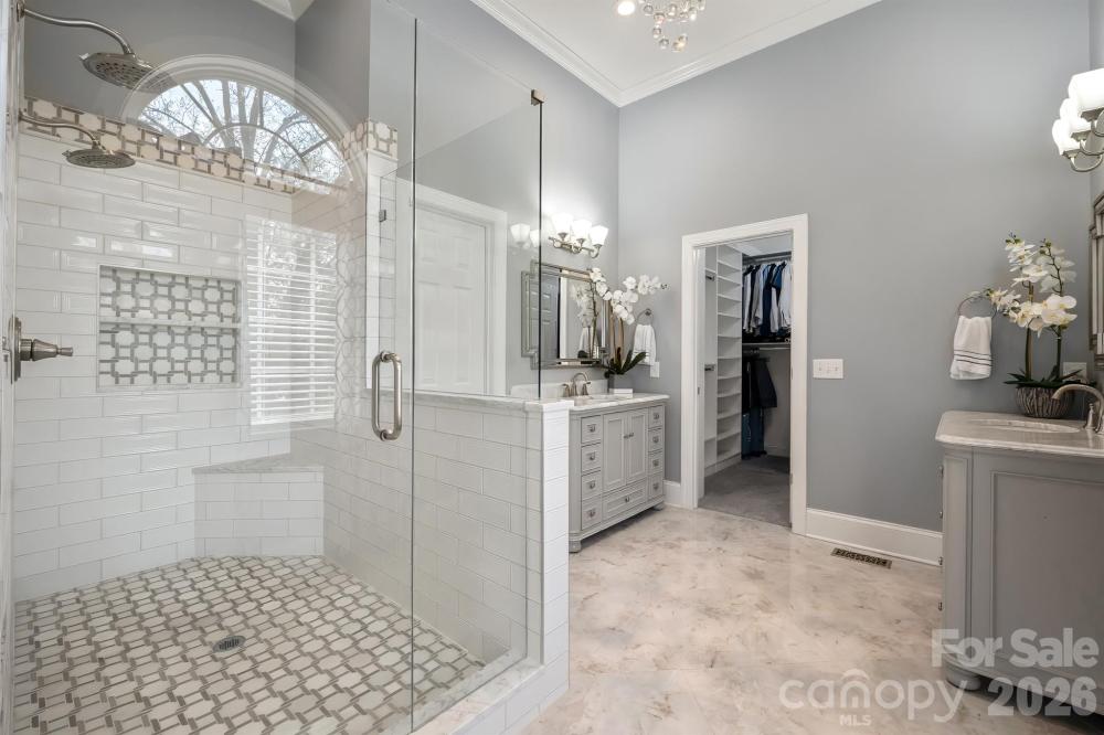 Properties like this don't happen often! Located in the thriving Birkdale community in Huntersville, this all-brick ranch home has been impeccably updated by the current owners. Starting on the exterior, find mature trees, professional landscaping, multi-zone irrigation, a 2-car side-load garage, and a rear deck with paver patio extension - all this, and the lot sits on the Birkdale golf course! Stunning sunsets, water views, and located on a "corner" lot, with no neighbors on one side! Step into the home and be stunned by all the updates! A tall entry foyer, engineered bamboo hardwood floors, a flex room that's perfect for a home office or possible 4th bedroom, plantation shutters, formal dining with coffered ceiling, living room with coffered ceiling, and a DREAM kitchen - staggered wood cabinets (including some display cabinets) with under lighting, marble center island, single basin undermount sink, high end stainless steel appliances and gas range, pantry space, wine cooler, breakfast nook, and recessed LED lighting added! The nice-sized den features a gas fireplace. All bedrooms have ceiling fans. Guest bedrooms have jack and jill bathroom with dual vanities, porcelain tile floor, and tiled tub/shower insert with niche. Laundry room also features ceramic tile floors. And the master suite is absolute madness - coffered trey ceiling, shiplap accent wall, recessed lighting, and an ensuite with oversized walk-in tile shower with double niche, 2 vanities, diamond pattern floors, and walk-in closet with custom shelving, island, and chandelier. Award winning schools, and located in the heart of Birkdale, the location is unbeatable. Walk/bike to the amenities the community offers (pool, clubhouse, tennis, pickleball, basketball, playground, etc). Year-round events in the community. And great proximity to shopping, dining, Lake Norman, highways, and more. Approximate ages of systems: roof is about 10 years old, HVAC system 1 year old, gas water heater 5 years old. Crawlspace has a vapor barrier installed.