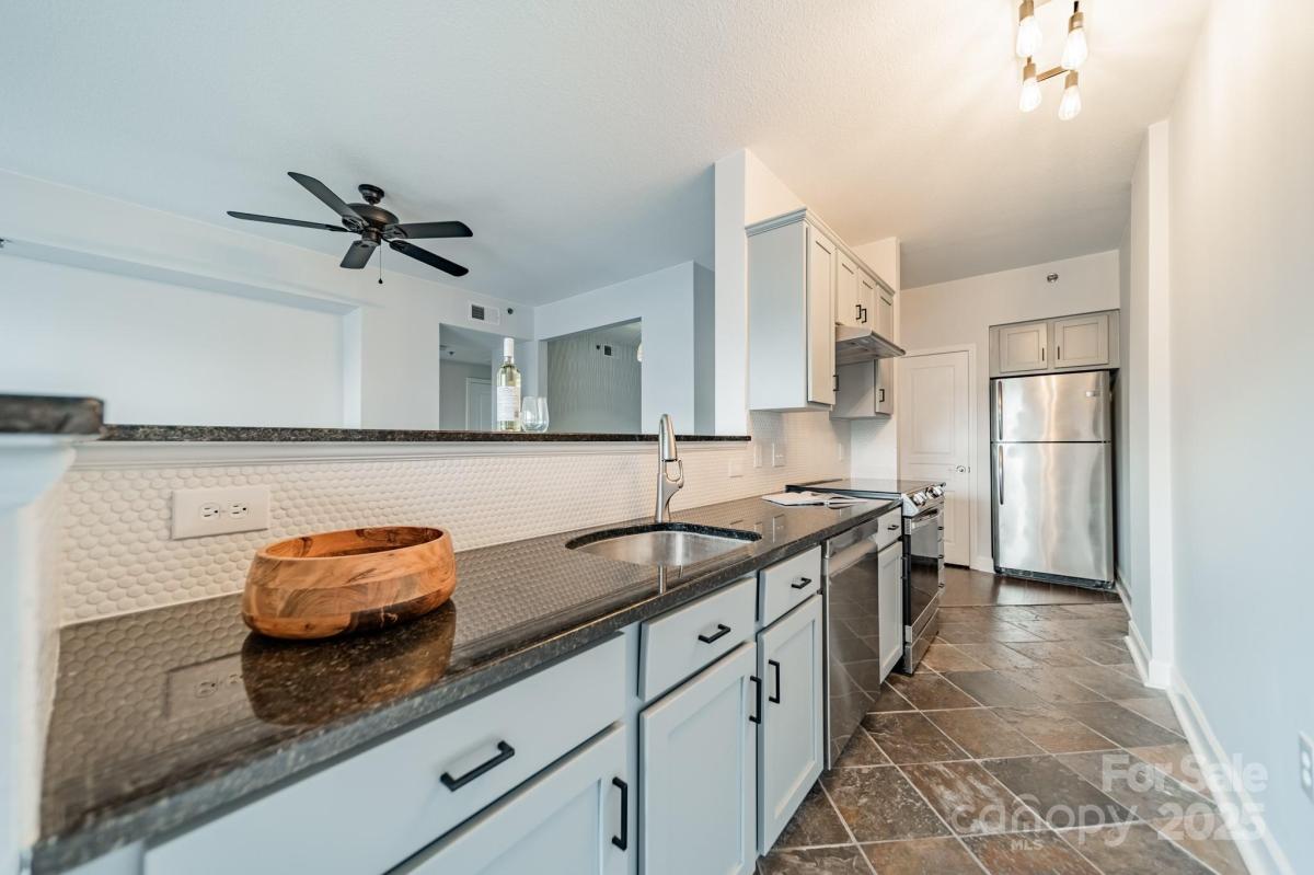 Beautifully updated condo in heart of Dilworth. Close to everything Charlotte is known for! Freedom Park, Uptown, South End, LoSo, SouthPark. Walk to Starbucks, Atrium, restaurants, shops and more! Recent updates to include; fully renovated bathroom with tile shower and rain head fixture, lovely vanity, gorgeous kitchen cabinets, all new lighting, new oven and new dishwasher. Custom cabinetry added in dining/office area. The entire condo has been freshly painted!! 1315 East condo has a gated parking garage, fitness center, spacious rooftop terrace, and two interior courtyards. Wonderful spaces for entertaining and relaxing! Building is concrete and steel construction. Don't miss the amenities on the 6th floor (rooftop terrace & fitness room).