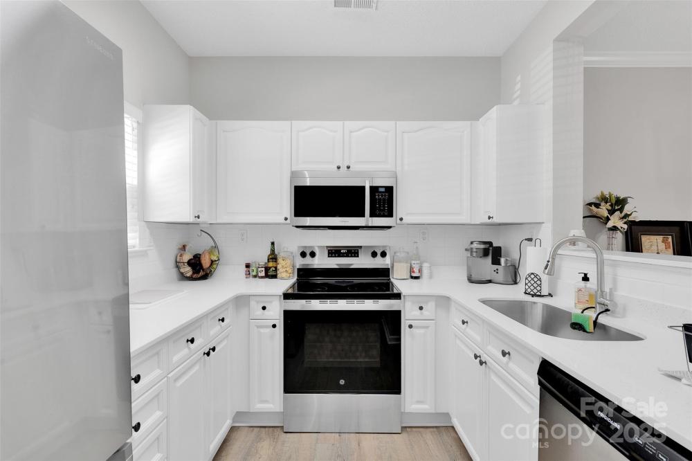 Pristine, updated 2-bedroom, 2.5 bath townhome in the desirable Savannah Townhomes community! The bright, modern kitchen features quartz countertops, a sleek white tile backsplash, and newer stainless steel appliances. With two spacious primary suites, this home offers flexibility and comfort for any lifestyle. Stylish updates throughout include upgraded lighting, flooring, and fixtures, along with a recently updated A/C (2023). Community amenities include a beautiful pool and fitness center. Conveniently located to 485, I-77, shopping, dining, medical, etc. Primary resident buyers have peace of mind from overly saturated rental units by the HOA rental cap in place.