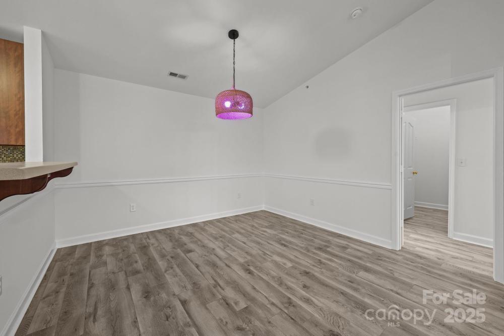 Welcome to see the top floor condo unit over looking the community pool amenity near the university area. Short drive to UNCC, Light Rail, Shoppings. No carpet inside. Fresh paint. Two bedroom suites. Vaulted ceiling in the living room, corner fireplace make it easier to arrange furnitures. Extra storage space next to the walk out balcony. A true move in ready.