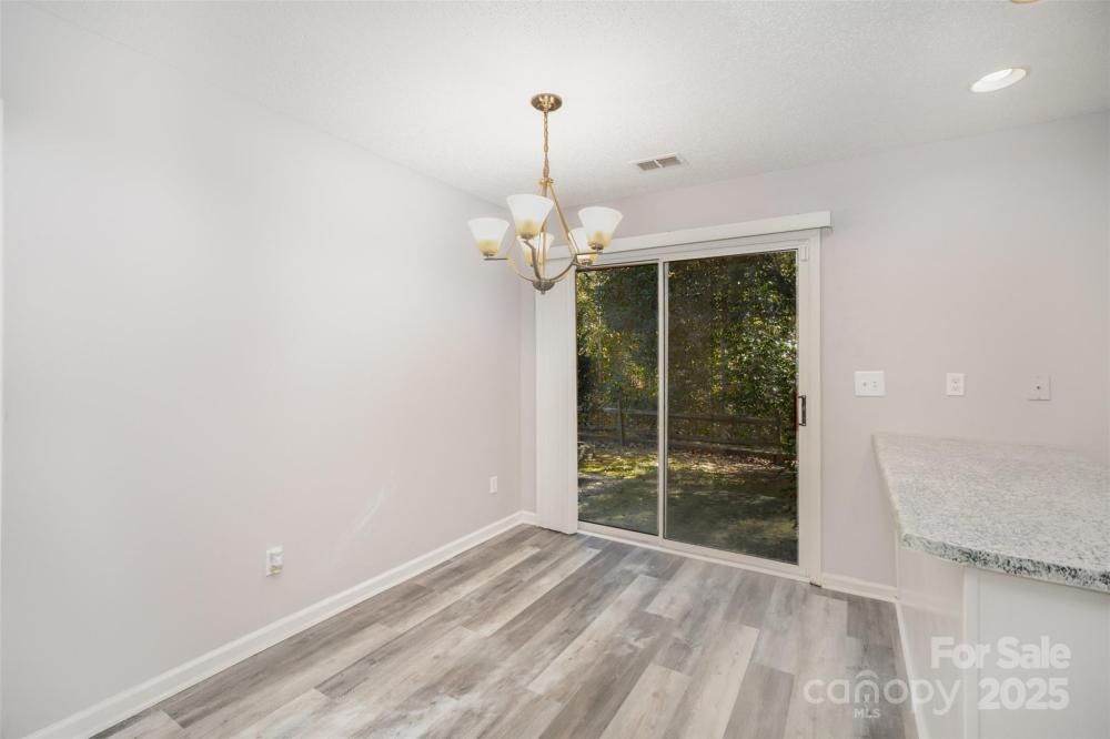Beautifully bright end unit townhome with primary bedroom on the main level and tons of community amenities! Home is located near I-485 providing you access in and around the Charlotte area and for any nature enthusiasts, it's also near the hiking & lake access at Latta Plantation! Interior has BRAND NEW FLOORING on the main level and opens up into a spacious living room flooded with natural light. Continue in to the dining area open to stunningly remodeled kitchen with bright counters, NEW matching S.S appliances, tons of white cabinets for storage & breakfast bar for additional seating. Primary bedroom located on main level with attached full bath and spacious walk-in closet. Upstairs you'll find 2 additional bedrooms allowing you the flexibility of an office or playroom plus a full hall bath for guests. Private back patio out back great for grilling plus grassy area and tree lining for seclusion. Community amenities include outdoor pool, hot tub, and picnic area PLUS community pond with walking trails. All of this located perfectly between Charlotte & Huntersville, including the highly ranked Birkdale Village, giving you access to endless shops & restaurants. ADDITIONAL UPDATES INCLUDE: 2025 HVAC!