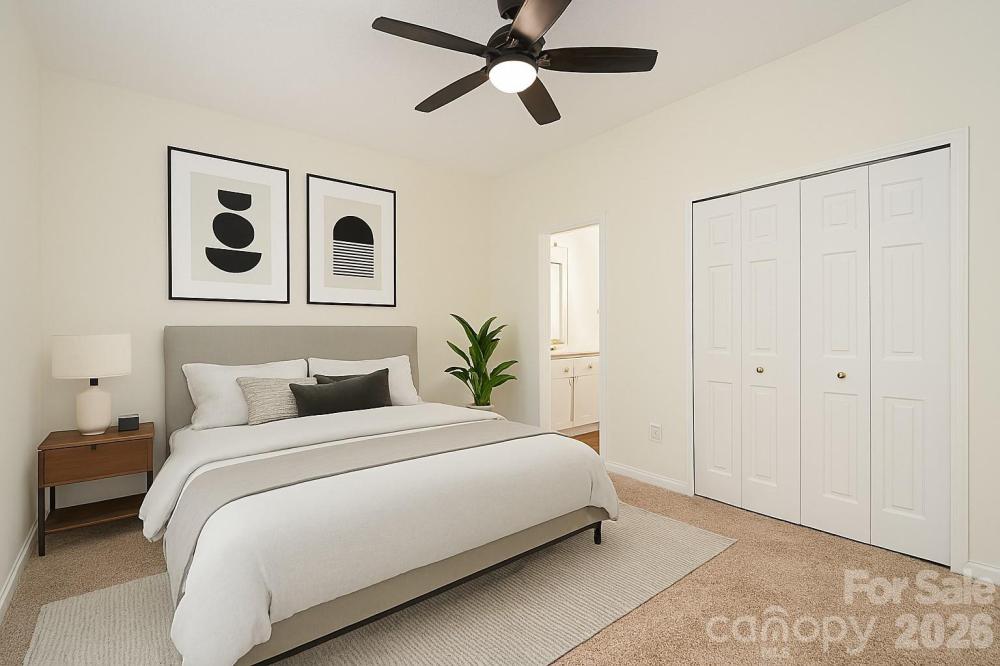 This move in ready townhome provides open concept living with generous room sizes, ample closet space and tons of natural light throughout. Features include new carpet upstairs, vinyl plank flooring downstairs, well appointed kitchen with GE appliances and walk-in laundry/pantry. Awesome wrap around deck in back overlooks the large community inground pool. Convenient half bath down. Upstairs features two spacious bedrooms with jack and jill bath. High ceilings and vinyl windows throughout. Storage unit on back deck. Two assigned parking spaces in front of unit. Trane AC and gas furnace 2013, Electric hot water tank 2017. All the big ticket items are done. Easy access to shopping, retail, groceries, restaurants, airport, etc. Close to freeways and Carowinds. Investor friendly and rent ready. Book your private showing today and make this maintenance free abode yours!