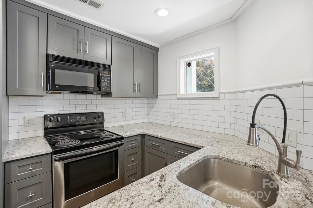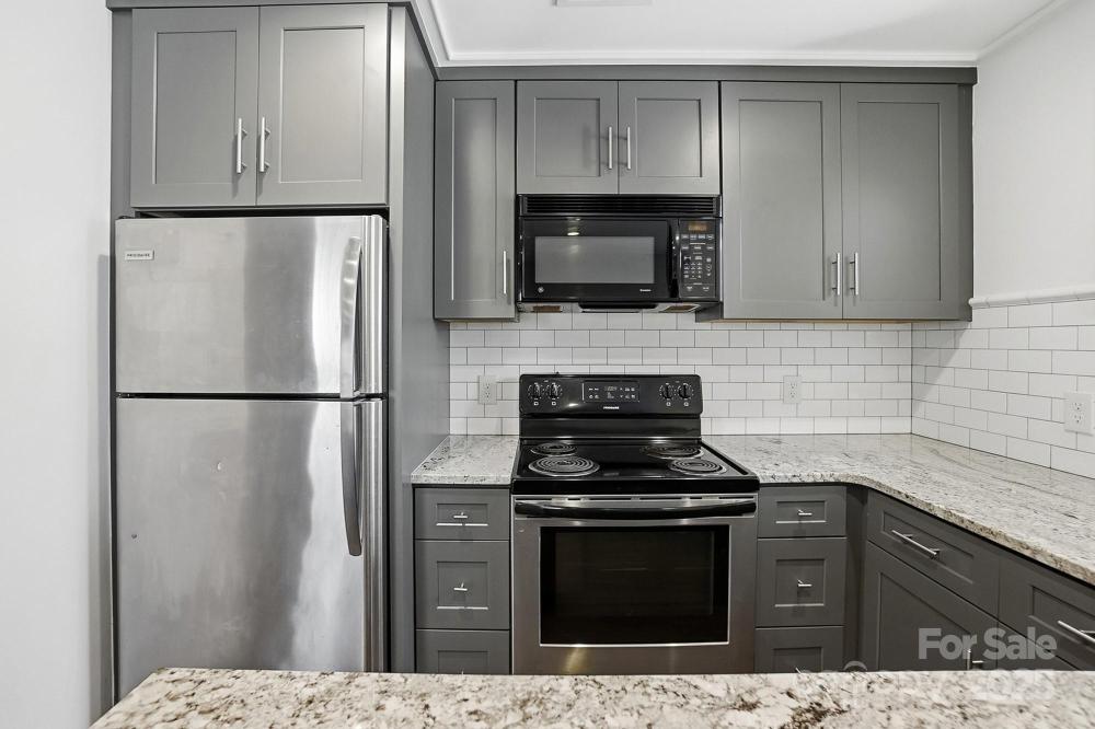 Love where you live! Located just minutes away from the vibrant pulse of Elizabeth, Plaza Midwood and Uptown, you will find this modern & stylish condo in a WALKABLE location! Step inside to find a fully updated interior with an open floor plan and a well equipped kitchen featuring a peninsula bar, sleek granite countertops, subway tile back splash and designer cabinetry with soft close drawers. The kitchen opens to a spacious living and dining area with plenty of windows providing natural light and crown molding. After a long day you can retreat to the primary bedroom where you will find a walk-in closet with custom shelving and sliding glass doors that leads to your private deck, perfect for enjoying outdoor views. The luxury bath offers a custom vanity & tiled shower and a conveniently located laundry and outdoor storage closet offers plenty of additional storage. Step outside where you can take a short walk to grab a coffee at Starbucks or a quick bite at The Salted Melon or Caswell Station or enjoy the community amenities that include a pool, clubhouse and fitness center. HOA dues include water and sewer.