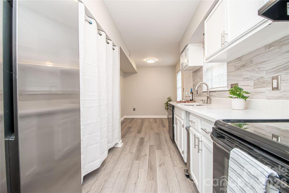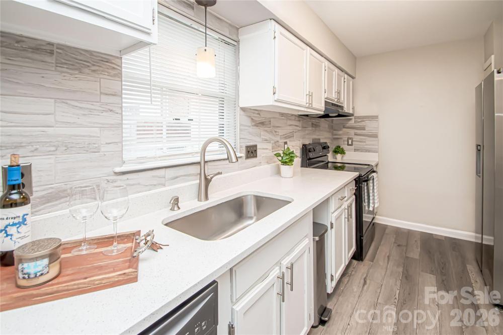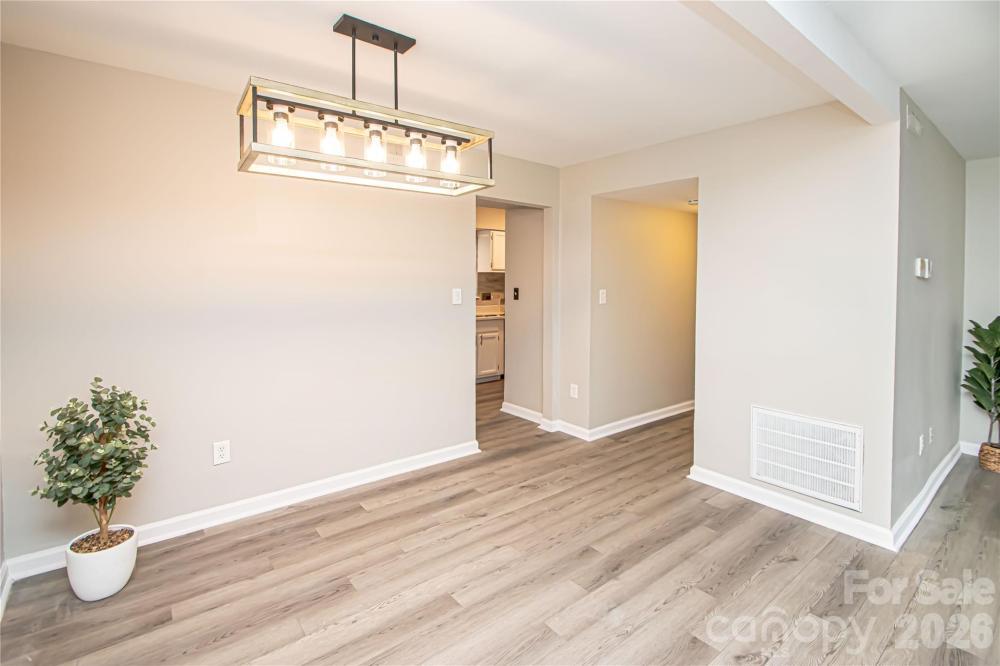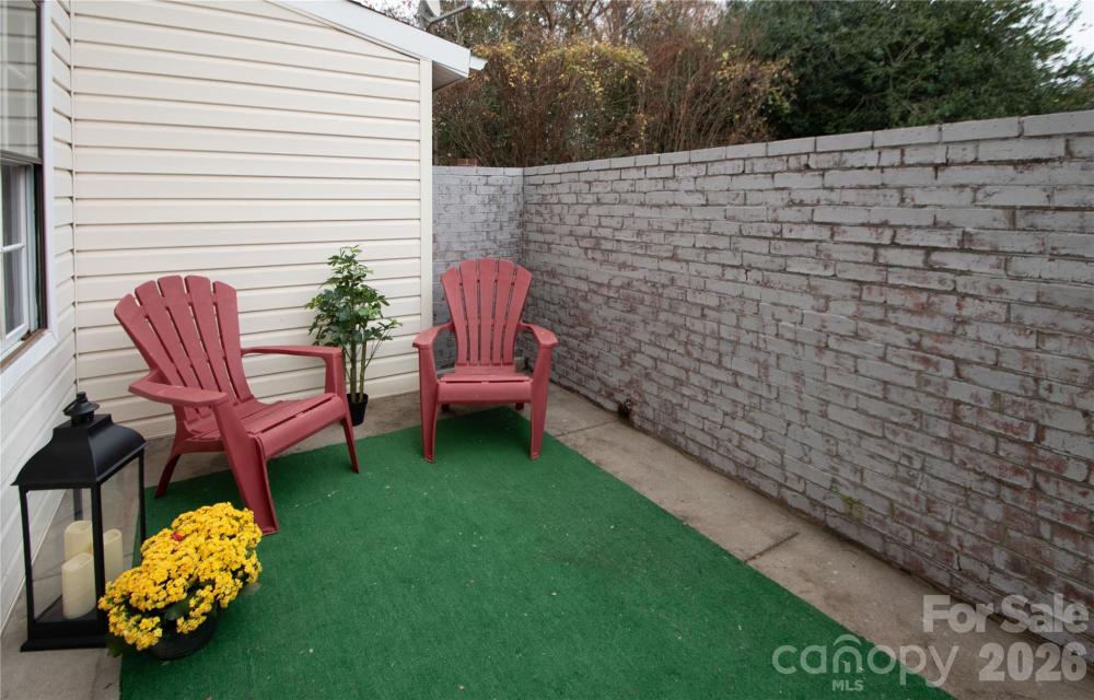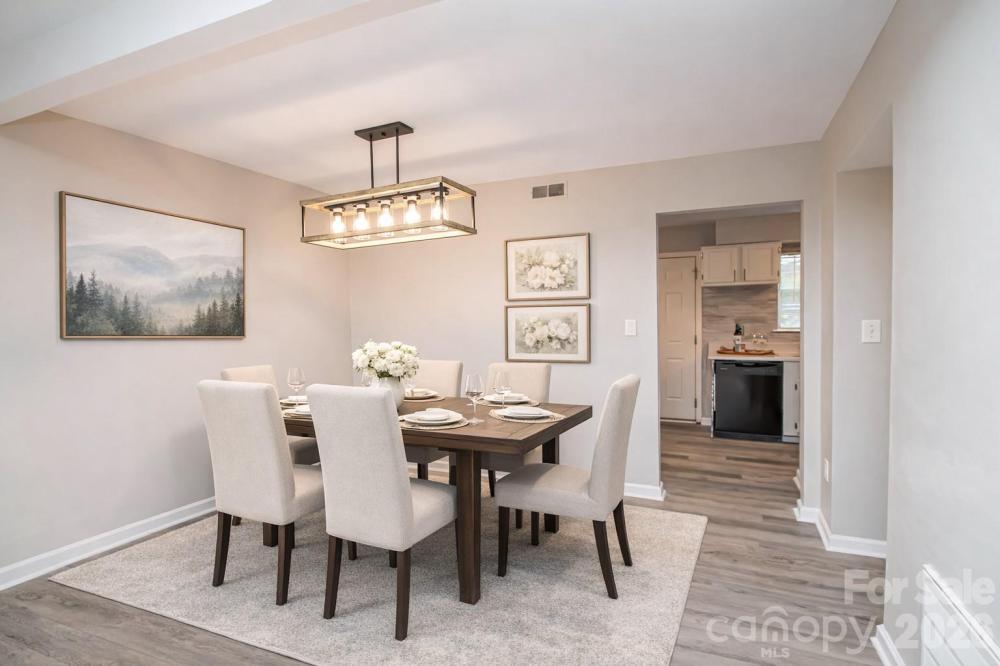 Charming 3-bed, 2.5-bath condo in a prime South Charlotte location! Conveniently close to the hospital, shops, restaurants, CATS line, Highway 485, and more. The kitchen features painted cabinets, granite countertops, and a tile backsplash, with a cozy breakfast area just steps away. The spacious family room opens to the dining room, which includes a newly installed chandelier. NEW LVP flooring (2023) runs throughout the home, with tile in all bathrooms. Enjoy the private back patio with a brick privacy fence and a storage closet—plus space for your own personal garden. Additional features include: Roof (2010), Refrigerator (2023), and per previous seller, a newer HVAC system. Duke Power changed power box in 2023. Bathrooms have been updated with modern vanities, tile flooring, and tiled showers. A great opportunity for both investors and owner-occupants. HOA covers water, sewer, trash, and landscaping.