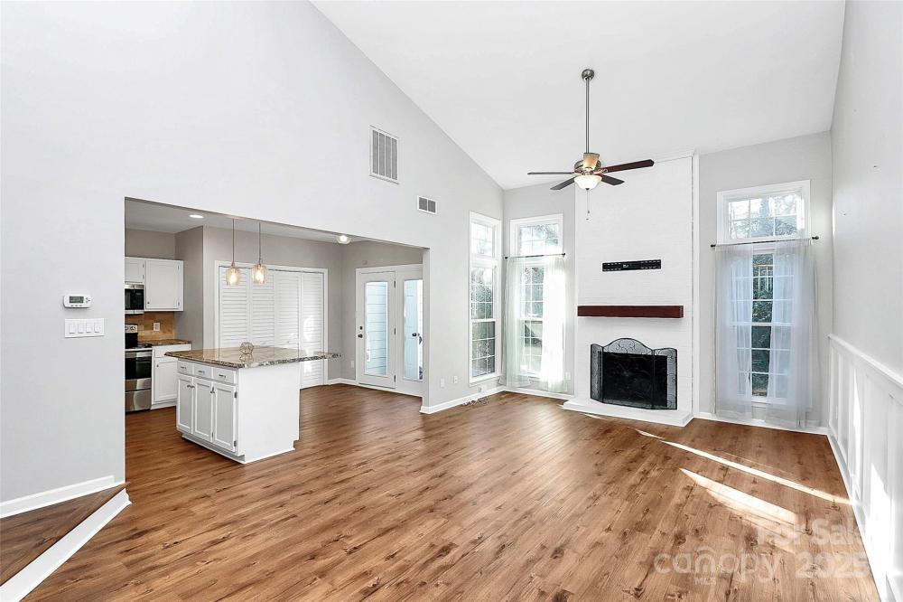 Don't miss this popular open floor plan townhome condo in Park Walk. This unit has a bedroom on the main level and the Primary bedroom on the second level. Open floor plan with high vaulted ceiling and wood burning fireplace. This building is on the edge of the complex and backs up to wooded area. Sit back in your quite back patio and watch the deer and wildlife. There is also a private patio in the front of the unit. Brand new HWH installed in December 2025. Park Walk is conveniently located off Park Road near South Meck High and within a short distance to Pineville Atrium Hospital, Carolina Place Mall, Ballantyne and South Park Mall. Access to the Greenway is through the subdivision behind the complex.