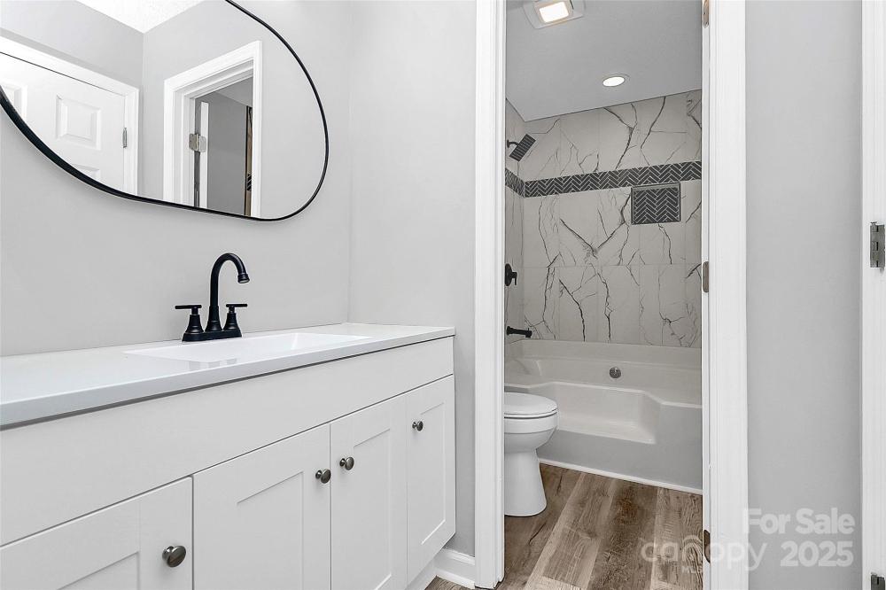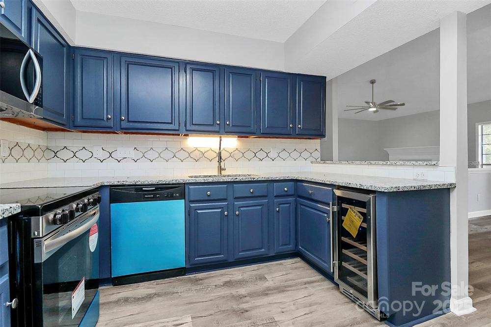 Amazing deal on this renovated 2 Bed, 2 Bath End-Unit Condo in the Harris Lake Community! This must see condo boasts fresh paint throughout with new vinyl laminate flooring in Master & living areas, new fans in living room and both bedrooms. New chandelier in dining room & lighting in kitchen, new electric outlets, & countless Modern upgrades. New door knobs, new carpet in secondary bedroom. Kitchen has been upgraded with granite, subway tile backsplash, Brushed nickel knobs, trash disposal, new faucet, & new SS appliance package including a wine beverage cooler. Guest bath updated with new tile to ceiling, new toilet, new vanity, new lighting, mirror, & laminate flooring. Custom master bath features new tile w/niche, spacious Garden tub, new toilet, vanity light, and bathroom hardware. Ample storage on balcony, tucked away in the back of the neighborhood for privacy. Great location close to Uptown, Airport, Plaza Midwood, NoDa. HOA just replaced roofs & building exteriors. No rental caps but (Air BnB) is not allowed. Spacious layout with large bedrooms. Brick fireplace in living room. Open the drapes in the morning and enjoy the light through the generous sized windows and sliding doors to the deck.