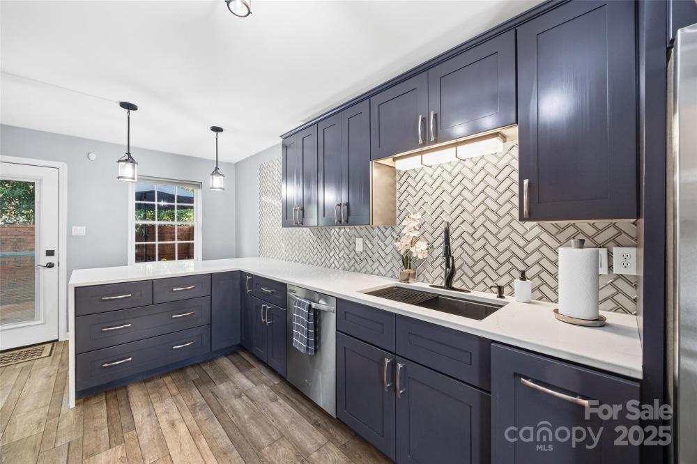 ***PRICE IMPROVEMENT*** This hard to find four-bedroom condo offers a perfect blend of comfort, style, and thoughtful upgrades throughout. Welcoming you with abundant natural light, replacement windows, fresh paint, LVP flooring, and recessed lighting that creates an inviting, modern atmosphere. The living and dining areas flow seamlessly to a stunning, fully renovated kitchen featuring waterfall quartz countertops, soft-close cabinetry and drawers, stainless steel appliances, tile backsplash, smart outlets, and a generous pantry—ideal for both everyday living and entertaining. Modern lighting with dimming and night-light features adds comfort and convenience throughout the home, plus the refrigerator, washer, and dryer convey. The living room boasts a beautiful stone fireplace, while the dining area easily accommodates larger furnishings for gatherings. Upstairs, the spacious primary suite has a generous walk-in closet, and a spa-inspired bath with luxury shower. Three additional bedrooms for that extra space you've been looking for. Enjoy extended outdoor living with the brick fenced patio, perfect for entertaining or quiet mornings, overlooking a peaceful wooded area within the community. Conveniently located to schools, shops, restaurants, Carolina Place Mall, Atrium Health Pineville and other medical facilities. Come see why this is perfect for your next home.