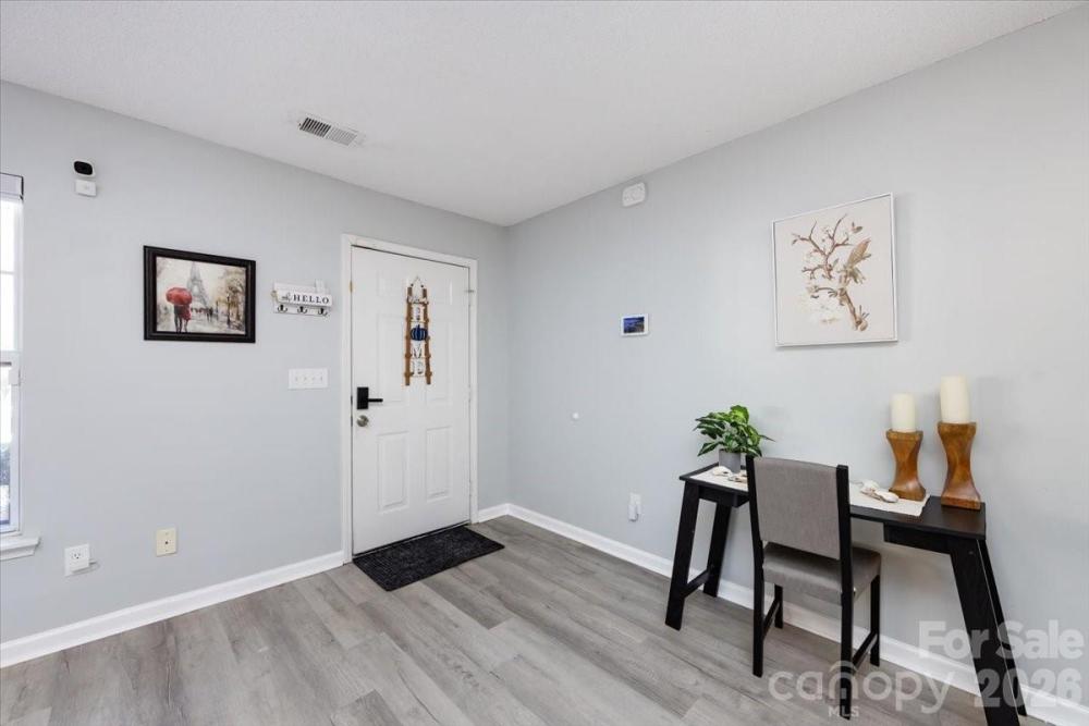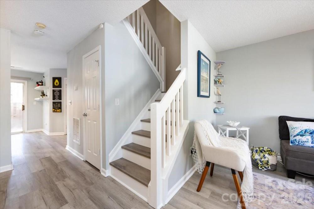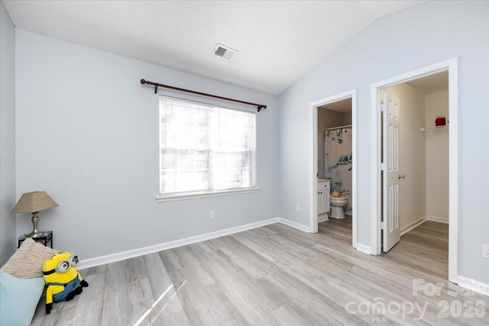 Super cute move in ready townhome within the heart of Steele Creek! Recent updates include luxury vinyl plank flooring, no carpet!! The light bright kitchen features granite counter tops, farmhouse style sink, stainless appliances and kitchen island. Primary bathroom has been beautifully upgraded with new vanity, LED back lit mirror and huge custom shower. Primary closet is exceptional with room for all your clothes! Secondary bedroom also features an ensuite and generous walk-in closet. Fresh paint and new lighting throughout! Newer windows and notarized shade in living room picture window. Close to Lake Wylie, Carowinds, great shopping and dining! Minutes to I485 and I77. Patio area is fenced in with storage closet. All appliances remain. HVAC replaced in 2022