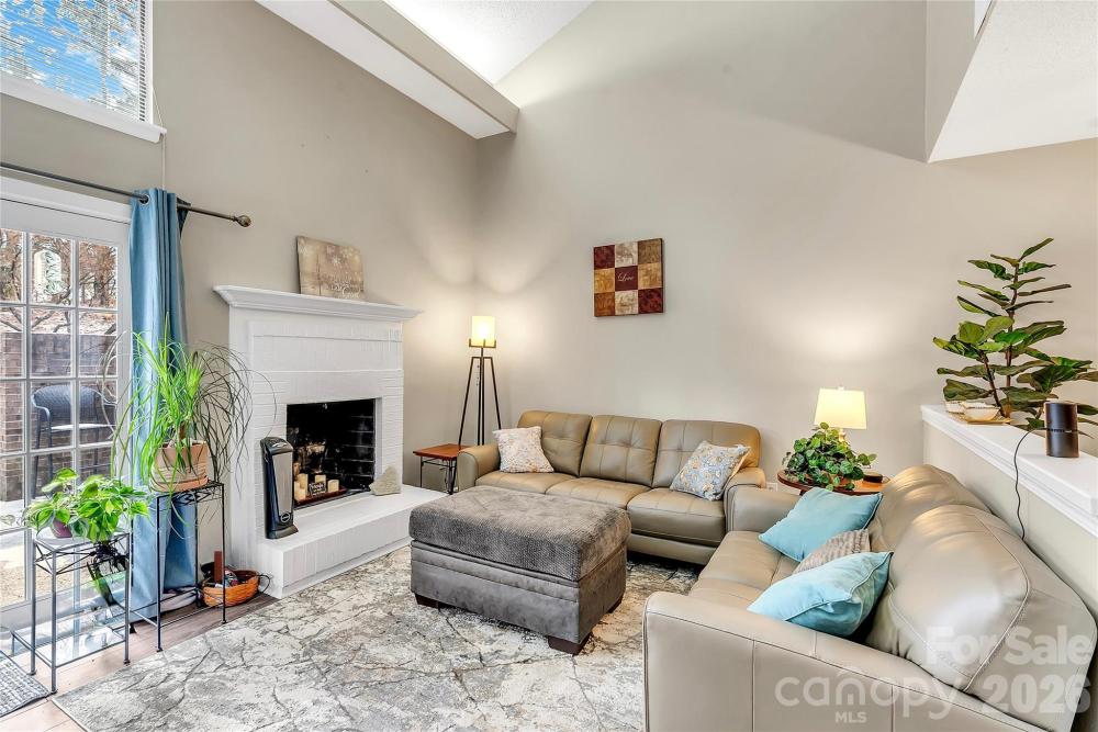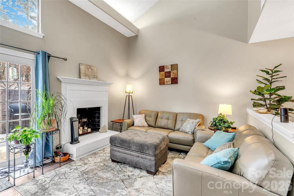 Welcome to the heart of it all in South Charlotte’s desirable Treva Woods! This stunning 2-bedroom, 2-bath townhome perfectly blends style, comfort, and peace of mind. Step through the charming red door into a dramatic 2-story living room, anchored by a real wood-burning fireplace and sleek, dark LVP flooring. The "cute kitchen" is ready for your culinary adventures, featuring a flat-top stove, pantry shelving, and a suite of newer stainless steel appliances (all under 3 years old). Designed for flexible living, the main floor hosts a spacious guest bedroom with double closets and a full tile bath. Upstairs, you’ll find a massive private loft/primary suite complete with two generous closets and its own en-suite bath. Worry-free ownership is the name of the game here! Major big-ticket items are already handled: a high-quality Lennox HVAC (3 years), newer roof (<10 years), fresh paint (<3 years), and plush carpet (3 years). Enjoy your morning coffee on the private back patio with extra storage, or cool off in the community pool. With a low $220/month HOA that covers water, trash, and exterior maintenance, plus two assigned parking spots, this home offers incredible value. Opportunities like this in 28226 do not last—don’t delay, schedule your showing today!