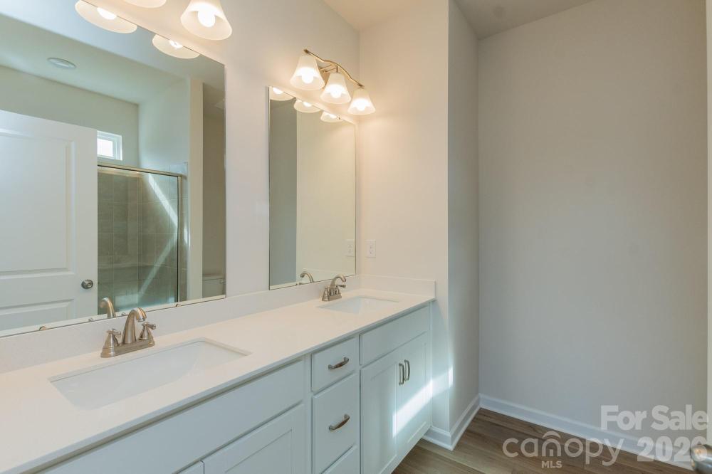 Discover the Rutledge floorplan in the sought-after Hickory Glen community—just 10 minutes from Uptown Charlotte! This townhome has it all! A two-story end-unit townhome that offers 1,443 sq ft of comfortable living space with 3 bedrooms and 2.5 bathrooms. The open-concept main level showcases a stylish kitchen with 36" cabinetry with crown molding, granite countertops, a spacious island, stainless steel appliances, and a pantry. The kitchen flows into the dining area and large family room, making it ideal for both everyday living and entertaining. Two-piece crown molding and vinyl plank flooring extends throughout the entire first floor for added character. Upstairs, the primary suite boasts a tray ceiling, walk-in closet, and an en-suite bath with double quartz vanities and a large, tile shower. Two additional bedrooms, a full bathroom, and a convenient laundry room complete the upper level. All baths and laundry have durable vinyl plank flooring. Hickory Glen is a boutique community of just 46 homes, all in duet style buildings—this particular home is on the very end in the cul-de-sac!