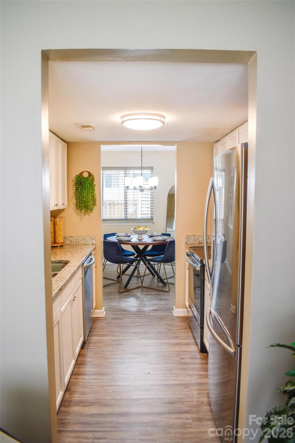 Unbelievable price in the heart of Charlotte. Seller is motivated!! Conveniently located 3 bedroom/1.5 bath townhome close to highway and shopping. Light and airy family room with fireplace. Galley kitchen has stainless appliances and granite countertops. Separate dining area next to kitchen. Neutral paint throughout. Vinyl plank flooring on the main. Cozy den area would make a great office, play area, exercise space or whatever your heart desires. Newly fenced backyard with spacious storage room. Recently fenced backyard is a cute & cozy private outside retreat that makes a great space for enjoying a morning coffee or letting your green thumb have its way. Backyard has outside storage area. Laundry room on the main. Half bath on the main. Carpet upstairs. Spacious primary has a walk in closet. Upstairs hall bath room has a shower/tub combo. Generously sized secondary bedrooms. Water and sewer included in monthly HOA fee. Nothing to do here but bring your suitcase. Stainless steel refrigerator included. Washer and dryer convey as well. Plenty of attractions a short distance away including: Harrisburg Road Park – just 3 minutes away. Charles T. Myers Golf Course – perfect for golf enthusiasts. Mint Hill Veterans Memorial Park – great for outings. Greenways nearby – Campbell Creek and Four Mile Creek for scenic trails. Reedy Creek Nature Center – only 7 minutes away for hiking and nature adventures. Disc golf is also available at Reedy Park and Campbell Creek. Everything you need is just around the corner too, including: Target – 5 minutes. Walmart – 4 minutes. Home Depot & local nursery – for home projects and garden lovers. Grocery options include Publix, Harris Teeter, and Food Lion all within minutes. Enjoy quick access to Charlotte’s most vibrant areas: Uptown Charlotte – only 15 minutes for work or entertainment. Plaza Midwood & NoDa – both within 15 minutes, featuring trendy restaurants, bars, and a thriving arts scene. Downtown Mint Hill just 8 minutes away. This centrally located townhome is a must see! Come by and take a look.