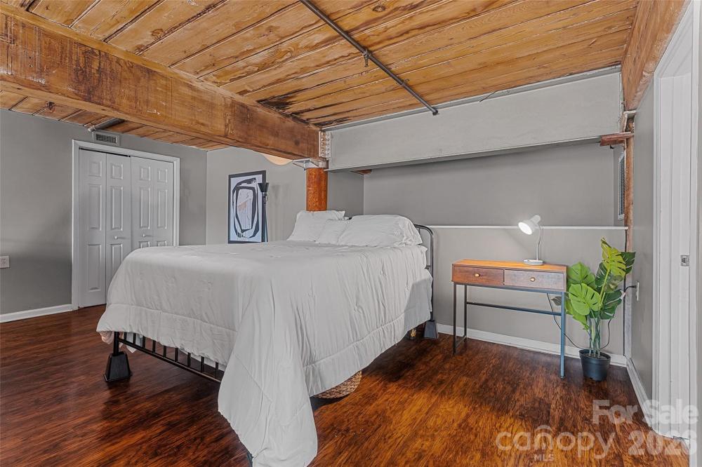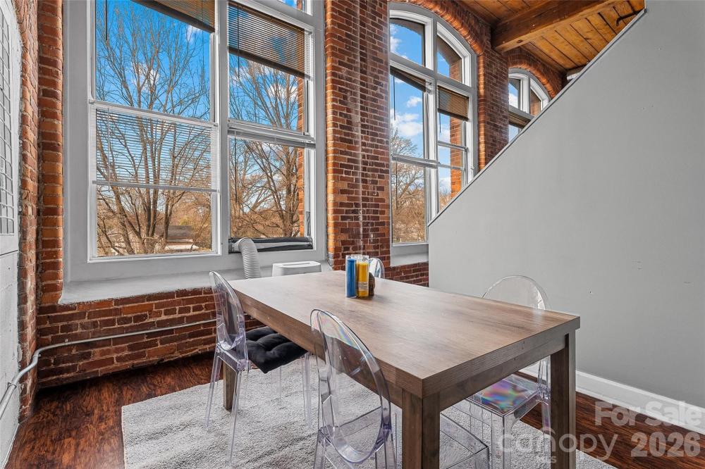An absolute architectural gem, this stunning double-unit loft showcases remarkable historic character seamlessly paired with modern luxury. As one of only two three-bedroom residences in the entire complex, this expansive home offers a rare scale and volume that must be experienced in person to be fully appreciated. The interior is defined by a striking industrial aesthetic featuring original exposed pine beams, massive timber columns, and authentic exposed brick walls that create a sense of timeless appeal. Soaring 17-foot ceilings and dramatic 12-foot arched windows allow an abundance of natural light to pour through the space, accentuating the unique architectural details and creating an open, airy atmosphere. Beautifully updated to meet the highest standards, the condo offers upscale professional finishes throughout, including rich wood flooring and premium stainless steel appliances that complement the historic elements while adding contemporary sophistication. The thoughtfully designed layout provides exceptional flexibility for both everyday living and grand-scale entertaining, making the space as functional as it is visually impressive. Residents enjoy the peace of mind provided by a secure building with elevator access and a prime location that balances urban proximity with easy accessibility. Ideally situated for those seeking seamless connectivity, the property is just minutes from major interstates I-85, I-77, and I-485, and within ten minutes of Charlotte Douglas International Airport. This rare close-to-the-city opportunity offers a one-of-a-kind living experience in a landmark setting. Adding even more value to this extraordinary home, the property qualifies for the Historic Tax Credit, representing a significant financial incentive and a unique opportunity to own a piece of preserved history.