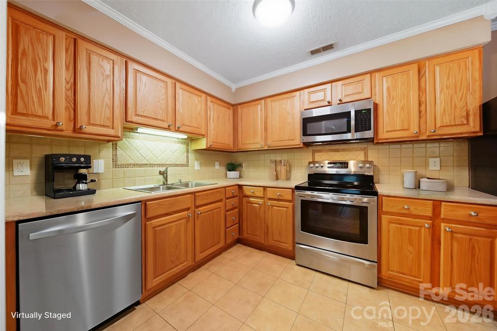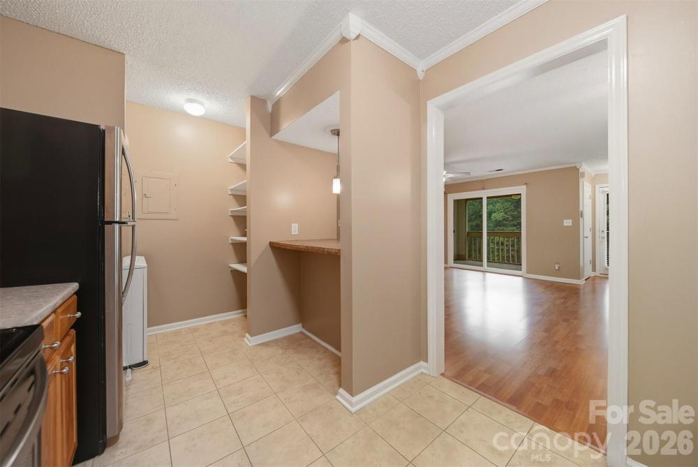 Come home to Cotswold in this charming upper-level unit at Churchill Downs! Located at the back of the complex and nestled amongs the trees, this private unit offers lots of updates and is move-in ready! With a neutral color palate and laminate flooring throughout, all you have to do is unpack. The kitchen updates include solid oak cabinetry, stainless Kenmore appliances, tiled backsplash and breakfast bar, and the washer/dryer remain. HVAC replaced in 2016, windows and sliders to the deck replaced in 2019. All new 2" blinds remain. Community perks include in-ground pool with clubhouse, tennis, & basketball courts. Dues are $237/month, include water, sewer, trash, and exterior building, lawn, and parking lot maintenance. Walk to your favorite Cotswold amenities--coffee, groceries, dining, shopping, and more with SouthPark and Uptown just a short drive away. One-year AHS home warranty included at closing.