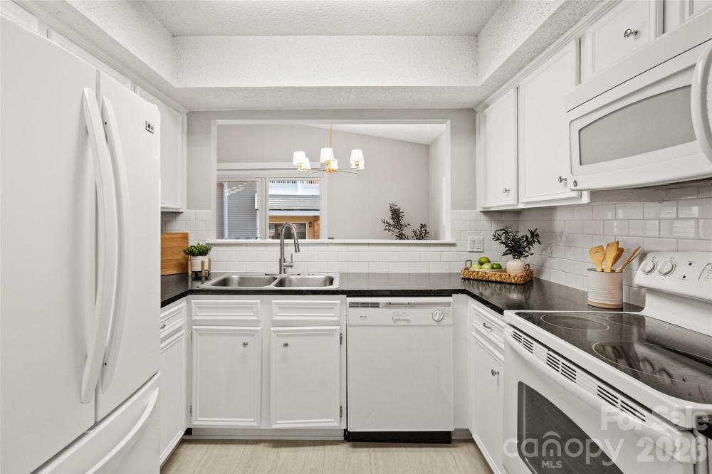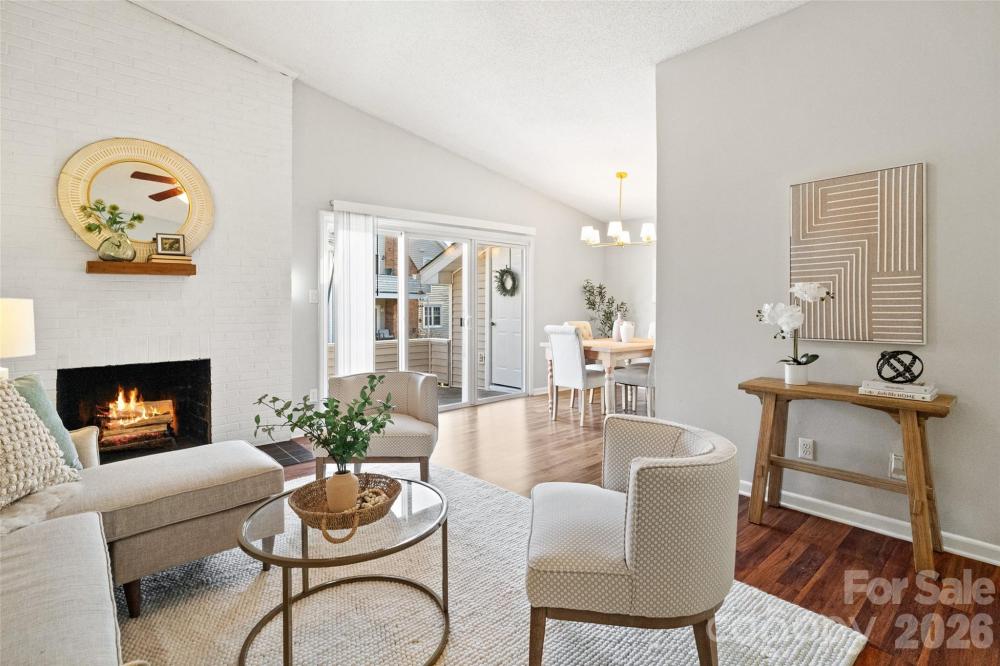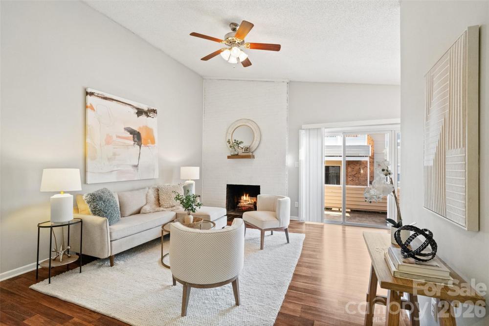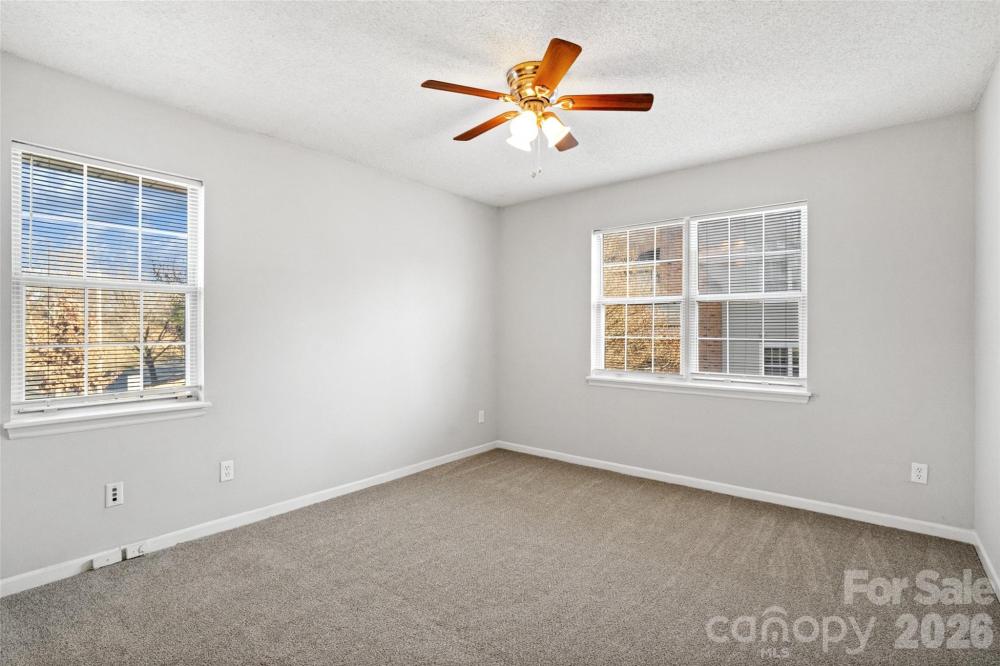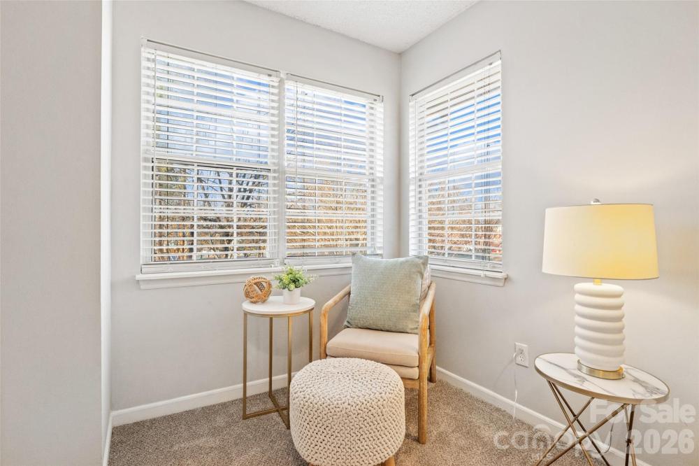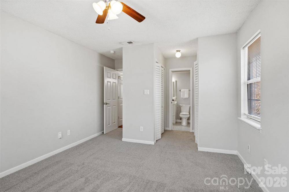 Welcome home to Renaissance Gardens! Upon entry, you’re greeted by a convenient drop zone and a private stairwell that leads to the main living space. This charming upper-level end unit offers 2 bedrooms and 2 full bathrooms in a bright, open floor plan. The main living area flows seamlessly, with vaulted ceilings that ensure a spacious feel. The kitchen features freshly painted cabinets, providing a clean, updated look. Just off the dining area, enjoy access to a private outdoor deck - perfect for morning coffee or evening relaxation - with an additional storage closet. Both bedrooms are generously sized, with ample closet space and ensuite bathrooms, ideal for privacy and flexibility. Recent updates include new light fixtures, new carpet, and fresh paint throughout, making this unit truly move-in ready. Residents enjoy access to the community’s outdoor pool and benefit from an unbeatable location just across the street from Carmel Commons, placing shopping, dining, and everyday conveniences right at your doorstep.