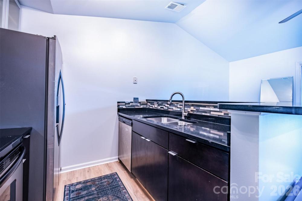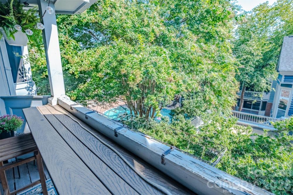 Seller to pay first 6 month's HOA dues at closing! Freshly painted crisp white! This bright and airy top floor home in popular Fourth Ward Square feels like a treehouse. Adorable balcony overlooks tree line and pool. Close to everything Uptown has to offer. Enjoy Panther, Knights, Hornets and soccer games, concerts, restaurants, bars, parks and light rail. Updated with stainless steel appliances, granite countertops, LVP flooring, tiled bath, vaulted ceiling, wired for Google fiber and large covered balcony with a storage room and bar. Wood burning fireplace. Stainless front load washer and dryer to convey - stackable to create more storage. One deeded parking space. Extra parking on the street. Parking passes available for street parking from ParkIt. Gas fire pit, clubhouse, dog park, salt water pool and fitness center make this a great place to call home. Clubhouse is available to rent for private events and features a rooftop terrace. Roof 2024, sprinkler system 2024, dishwasher 2023, LVP flooring 2021, hot water heater 2021, HVAC maintained seasonally. Seller to pay assessment for sprinkler system in full at closing. Rentals allowed: leases must be >6 months in length, 20% of total units permitted to be tenant-occupied; rental cap has been met, there is a waiting list. Association will vote at the end of February on increasing rental %.