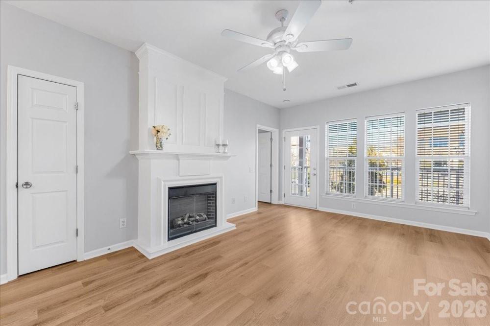 Pristine two bedroom, two bath unit in lovely Belle Vista right in the heart of Ballantyne. Move in ready, with fresh neutral paint and brand new LVP flooring throughout. Kitchen features stainless appliances, granite countertops and bar seating. Open floor plan with spacious dining room and living room with fireplace and abundant natural light. Step onto the balcony for your morning cup of coffee and enjoy the lively energy of the Ballantyne community. Primary BR with ensuite featuring dual vanities, shower and walk-in closet. Split BR plan with additional spacious bedroom and large secondary bathroom. True laundry room with plenty of storage ~ washer/dryer can remain. HVAC installed in 2019. Community features clubhouse, pool, walking trails and sidewalks. Just steps away from numerous restaurants and eateries, and all the fun and energy of the Ballantyne Bowl. Easy access to interstates and many top rated schools. This one is a gem!