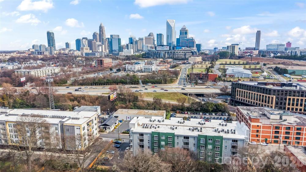 Don’t miss this Uptown studio condo in Skybridge Terrace! One of the standout features of this building is the convenience of elevator access. The kitchen features granite countertops, a tile backsplash, and stainless steel appliances, and flows seamlessly into the dining area and living space—perfect for easy everyday living. The thoughtfully designed layout includes a designated bedroom area with a closet, offering separation and storage while maintaining an open studio concept. The full bath offers a granite-topped vanity and a convenient laundry closet. Notable updates include a new roof in 2024 and a water heater and HVAC replaced in 2019. Ideally located near the Greenway, local restaurants and shopping, Uptown, and Bank of America Stadium, this condo offers both comfort and convenience. Come see everything this property has to offer!