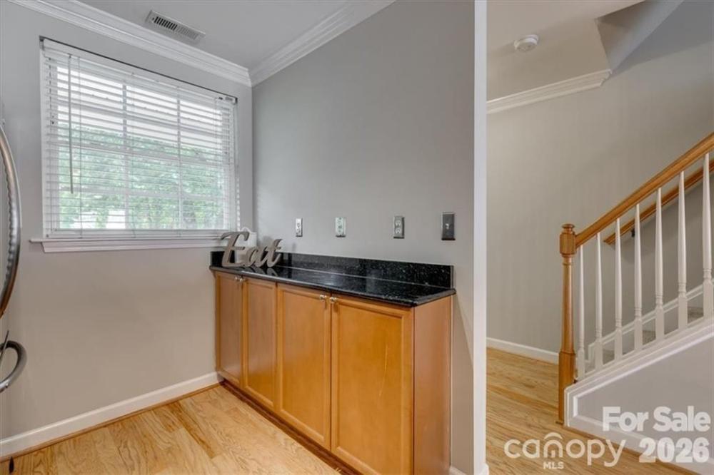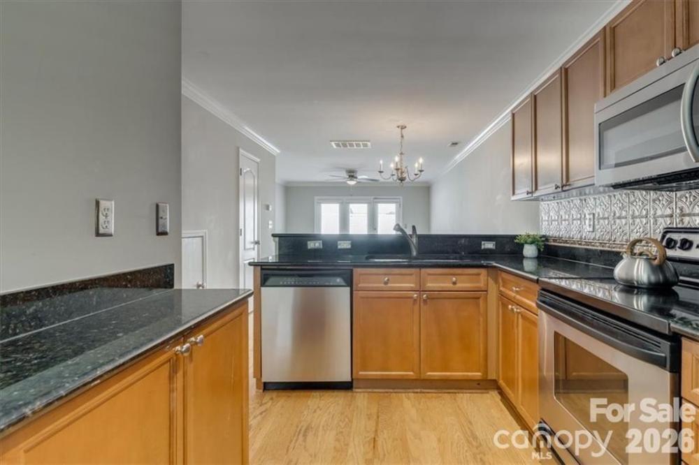 Welcome to 1224 Green Oaks Lane #B, a cozy two-story, full brick condominium tucked into the heart of Plaza Midwood—one of Charlotte’s most vibrant and walkable communities. The downstairs features an open and comfortable floor plan, allowing the living room and kitchen to flow seamlessly together. This layout makes the space feel larger while still maintaining a warm, inviting atmosphere. Whether you're hosting a few friends, enjoying a quiet evening at home, or working from the dining table, the open design offers flexibility and everyday functionality. Real hardwood floors add character and durability throughout the main level, and the kitchen is equipped with granite countertops, providing a practical workspace with a clean, updated look. Just off the main living area, step outside to your private fenced-in back patio—a great extension of the living space. Perfect for grilling, relaxing after work, or giving your pup a secure outdoor area to enjoy. Upstairs, you’ll find two cozy bedrooms, each offering comfortable space and natural light. The layout provides privacy from the main living areas, making it ideal for roommates, guests, or a home office setup if needed. One of the highlights of this community is the beautiful green space out front, complete with a charming swinging bench. It’s a peaceful spot for morning coffee, walking the dogs, or simply enjoying the neighborhood setting. Located just minutes from Plaza Midwood’s popular restaurants, coffee shops, breweries, and parks, this home offers the perfect balance of comfort and convenience. Whether you’re a first-time buyer looking to get into a fantastic area or an investor seeking a highly rentable unit in one of Charlotte’s strongest neighborhoods, this is an opportunity you won’t want to miss.