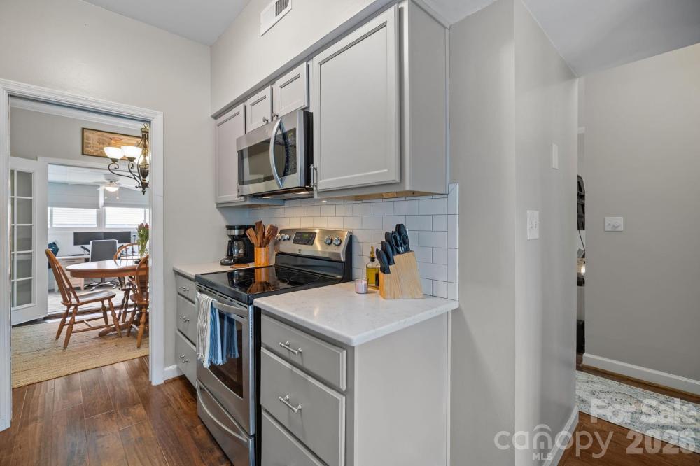 Welcome to Quail Hill in the heart of SouthPark! This updated 2-bedroom condo is move-in ready and perfectly positioned to enjoy some of Charlotte’s best shopping, dining, and recreation. Walk to the YMCA, spend the afternoon at SouthPark Mall, or meet friends at one of the many nearby restaurants-everything you need is just minutes away. Inside, you’ll find laminate wood flooring throughout the main living areas (excluding the stairs), a comfortable living room with built-in cabinetry and shelving, and a dining area that flows easily for everyday living or entertaining. The kitchen has been thoughtfully updated with quartz countertops, tile backsplash, modern cabinetry, and stainless-steel appliances. One of the standout features of this home is the bright and airy sunroom, accessed through French doors. While not heated or cooled, the sellers have enjoyed using this space year-round as a home office. Just beyond, a fenced patio offers a great spot to relax or accommodate your furry friend. Upstairs, a wide staircase leads to two spacious bedrooms connected by a Jack-and-Jill bathroom. You’ll also appreciate the abundant storage throughout, including a large storage closet located off the second fenced patio just outside the kitchen. The HOA covers water and sewer, exterior maintenance, lawn and landscape care, clubhouse, community pool, and road maintenance-providing convenient, low-maintenance living in a prime South Charlotte location.