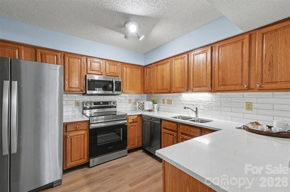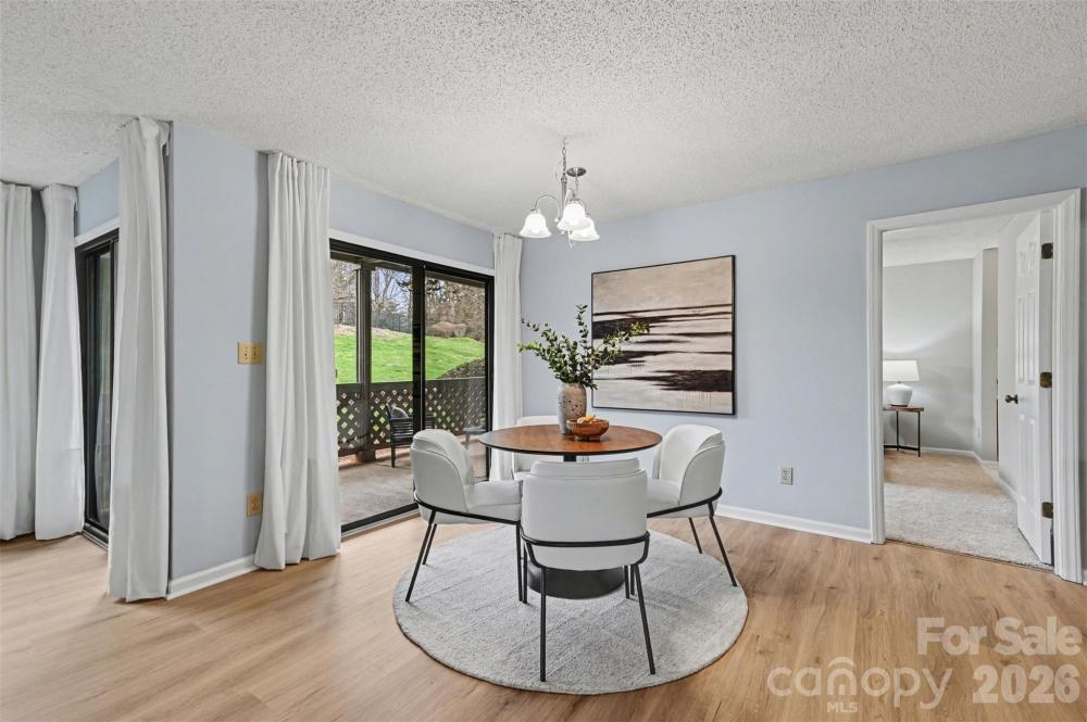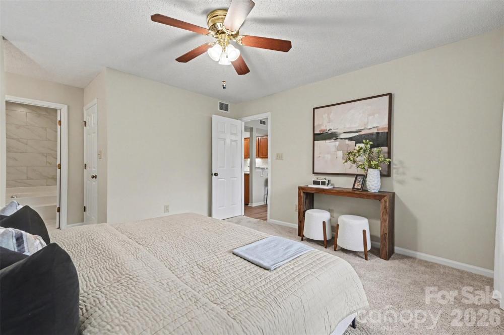 Welcome to this beautifully refreshed first floor condo in the Harris Lake community, offering the perfect blend of comfort, convenience, and investment potential. Featuring a spacious split bedroom floor plan with two full bedrooms and two full bathrooms, this home provides privacy and flexibility for both homeowners and tenants. The interior has been thoughtfully updated with gleaming quartz kitchen countertops, new appliances, fresh paint, updated flooring, and tiled floors, creating a clean and modern feel throughout. The bright living room is anchored by a charming brick fireplace with new Statuary Vein Porcelain Tile, while large windows and sliding doors allow natural light to pour in. Enjoy the peaceful views from your covered patio, perfect for relaxing or entertaining. Additional conveniences include in unit laundry and extra outdoor storage, making everyday living easy and functional. Ideal for both homeowners and investors, the community has no rental caps, offering strong rental potential and excellent cash flow opportunities. The HOA has recently replaced the roofs and updated building exteriors, providing added peace of mind. Located just steps from public transportation, minutes from major highways, and only 10 minutes to Uptown Charlotte, this home offers unbeatable accessibility. Enjoy being close to some of Charlotte’s most vibrant destinations including NoDa, Plaza Midwood, Reedy Creek Park, Optimist Hall, Camp North End, the University area, Concord Mills, and Charlotte Douglas International Airport. While centrally located near everything Charlotte has to offer, this community maintains a quiet, peaceful atmosphere that feels like a private oasis in the city.