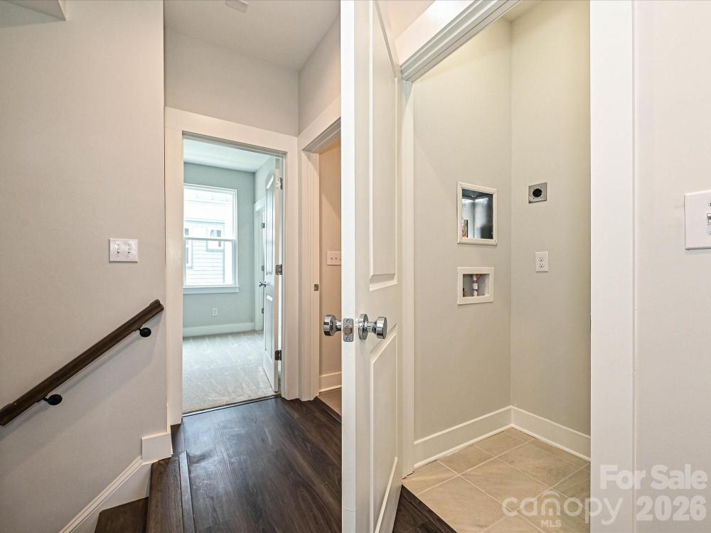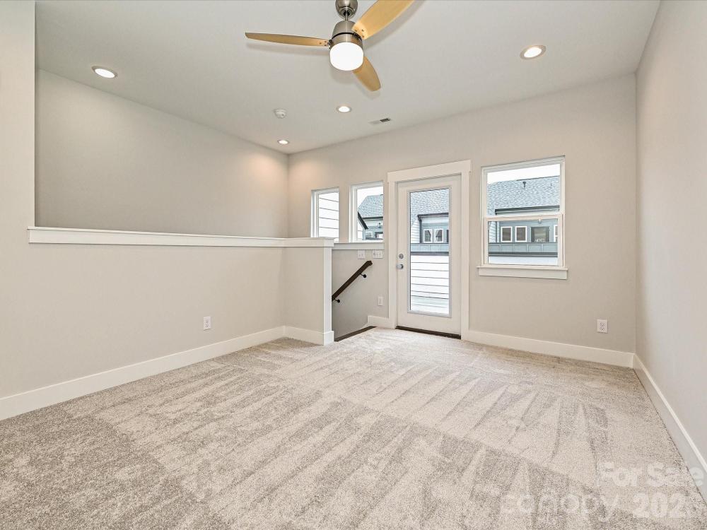 Want close proximity to Uptown Charlotte and Camp North End? This townhome offers that & much more. The 1st floor has a 1-car garage & Flex room w/ half bath, & the top floor has a Bonus bedroom & spacious rooftop terrace. The second floor has an open layout, plus a small deck off the kitchen. The Kitchen features 42" light grey cabinets, LED under-cabinet lights, trash pullout, large undermount SS sink, quartz counters, & GE SS app w/ gas range. The 3rd floor hosts both bedrooms and the laundry closet w/ tile floor. Full baths include quartz counters, white cabs, tiled floors. Premier Bath includes a tiled shower with semi-frameless surround and built-in shampoo niche. LVP flooring is throughout the first and second floors, plus third floor landing, with oak treads on all stairs and tile in the flex powder room. Ceiling fans are included in the flex, living room, premier suite and bonus bedroom. Walking distance to bars, restaurants, events, and more! Additional street parking is available.