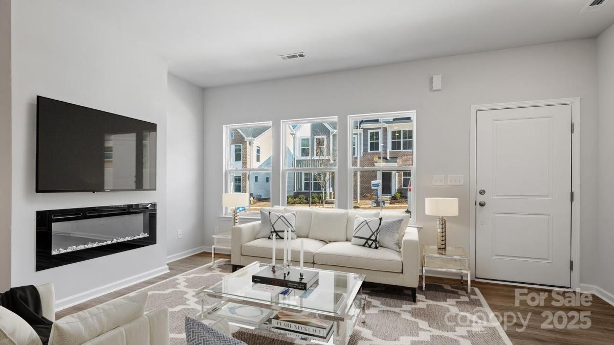 This two-story townhome includes three bedrooms and two-and-one-half bathrooms. Step inside to an inviting open-concept great room that seamlessly connects to the eat-in area and kitchen, complete with a large island that's perfect for entertaining. Upstairs, the primary suite boasts a walk-in closet, a boxed ceiling, and a dual vanity. For added convenience, a laundry closet is located just outside the primary suite. Two secondary bedrooms and a full bathroom complete the upper level. A powder room is conveniently situated near the entrance of the one-car garage, alongside a bench with cubbies or an organization cabinet.