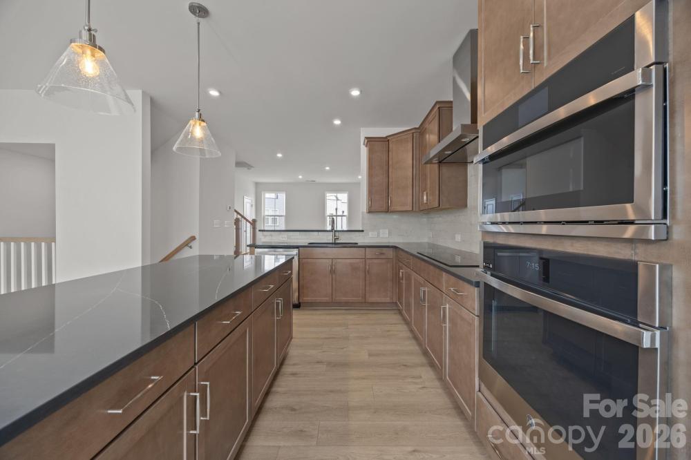 Welcome to The River District—a true master-planned community designed for the way you live, work, and play. This beautifully appointed Landon three-story townhome offers exceptional flexibility and style. The main level features a spacious flex room—perfect for a home office, game room, gym, or creative studio. Upstairs, the heart of the home shines with a gourmet kitchen showcasing quartz countertops, a built-in oven and microwave, electric cooktop, and soft-close cabinetry. The open-concept dining and living areas provide an inviting space for entertaining, with sliding glass doors leading to your private balcony—ideal for morning coffee or evening relaxation. The third level hosts a serene owner’s retreat, complete with a bright and airy bedroom and a spa-inspired bath designed for ultimate comfort. Two additional bedrooms, a full bath, and a conveniently located laundry area complete the upper floor. Every detail of this home has been thoughtfully curated, with interior design finishes individually hand-selected by our professional design team. Location truly sets this home apart. At The River District, you’re just minutes from everything you need. The community will feature resort-style amenities including a pool, clubhouse with fitness center, tennis and pickleball courts, parks, scenic trails, a working two-acre farm with an on-site farmer, and a stunning riverfront amphitheater. Experience elevated living in a vibrant community where convenience meets connection.