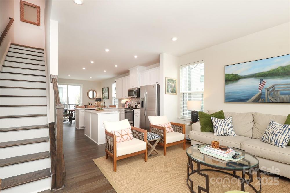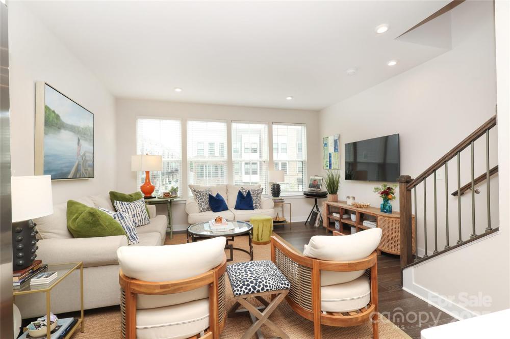 Modern urban living in the heart of LoSo! This end-unit townhome faces the community green space and is close to the extra neighborhood parking. You are minutes from Lower Southend’s thriving restaurants, breweries, cafés, and shopping. The first level foyer welcomes you and accesses a spacious two-car tandem garage. The current owner has created additional living space here —perfect as a man cave, she shack or exercise area—while still leaving plenty of room to park two cars. Flooded with natural light from its many windows, the open-concept main level features a generous living room, an all-white kitchen with quartz countertops and a large island—ideal for both everyday cooking and entertaining. A dining area with balcony access and a convenient powder room round out the main level. Upstairs, the spacious primary suite has a gorgeous bath with double vanity, walk-in shower, and generous walk-in closet. A secondary bedroom also features its own en-suite bath and walk-in closet, providing comfort and privacy for family or guests. Laundry on this level as well. Built by Ryan Homes, these thoughtfully designed townhomes are known for their quality construction and unbeatable location. This property qualifies for a non-income dependent Grant, up to $10,00, which can go directly towards the buyer's closing costs.