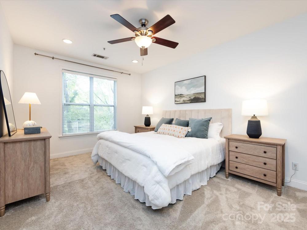 Move-in ready condo in the heart of Charlotte! This beautifully maintained two-bedroom, two-bath residence offers the perfect blend of comfort and convenience just steps from Park Road Shopping Center and minutes to South End, SouthPark, Myers Park, and Uptown. Designed for easy living and entertaining, the open floor plan connects the kitchen, dining, and living areas seamlessly. The kitchen features quality cabinetry and stainless steel appliances, while the living area is filled with natural light from large windows and opens to a private, covered balcony ideal for morning coffee or evening relaxation. The spacious guest bedroom includes access to a full bath, and the primary suite serves as a true retreat with an oversized bedroom, dual vanity bath, and an expansive walk-in closet. Enjoy community amenities including an outdoor pool, covered parking, elevator access, and a private storage closet conveniently located just one floor up. Experience low-maintenance living in one of Charlotte’s most desirable areas with top rated schools!