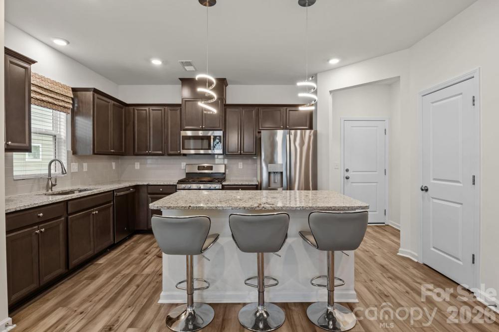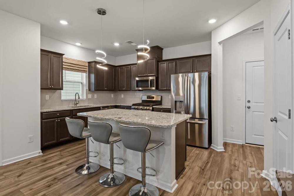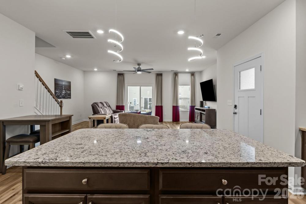 Why wait for new construction when you can move in now? This end-unit townhome offers the largest floorplan in Aberdeen with a two-car garage, priced well below comparable new construction in the community. With 1,787 sq ft of thoughtfully designed living space, this home delivers functionality and natural light throughout. The open main level features LVP flooring and a seamless layout ideal for everyday living and entertaining. The kitchen includes granite countertops, subway tile backsplash, rich mocha cabinetry, stainless steel appliances, gas range, and an oversized island with pendant lighting. Upstairs, a versatile bonus space provides flexibility for a home office, media room, or play area. Two spacious secondary bedrooms, a dual-sink bath, and an upstairs laundry room add everyday convenience. The owner’s suite features a walk-in closet and private bath with quartz countertops and a tiled shower. All appliances convey!! HOA covers full landscaping, trash and recycling, plus community amenities including pool, cabana, and playground. Conveniently located near shopping with easy access to I-485, I-85, and I-77. Move in Sooner, Invest Smarter! Assumable 5.25% VA Loan available for eligible buyers.