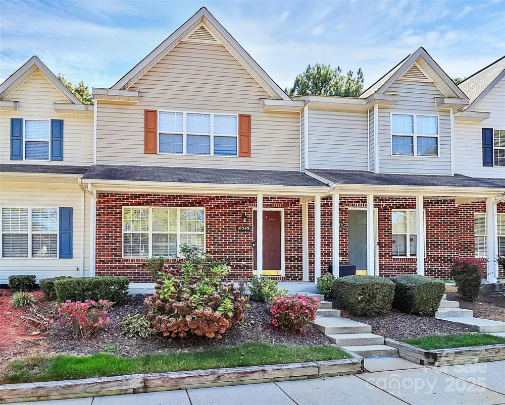 Welcome to Hunter Downs and this stunning town home! This amazing home has a lot of bonus features! As you walk up the front steps to this partial brick home you will see the rocking chair front porch that is perfect for relaxing. As you walk into the living room, the gas fireplace is the highlight of this well lit open area. With lots of room for seating and plenty of room for the dining area this is a great entertaining area. All of this leads into the spacious kitchen complete with stainless steel appliances, counter space and an eat in area. Enjoy dining al fresco off the elevated back porch. Near the large pantry is the half bath and the large laundry room. Upstairs are two bedrooms, both set up like a primary bedroom with their own private bath and walk in closet. The vaulted ceilings make them feel large and airy. This is a great set up for roommates. The lower level adds a lot of value with a large family room, private bath and another bedroom opening out to the patio. Lots of opportunity for a personal home or investment property. The community boasts lots of sidewalks and an outdoor pool located at 9535 Terrier Way. All of this and more just minutes to 85, 77, Northlake Mall and more! Plenty of dining and shopping all around the community. Low HOA dues and a great location! Take a look today!