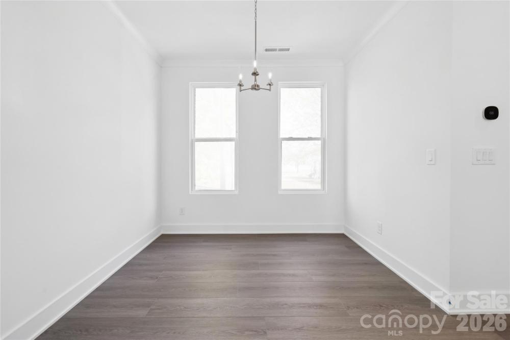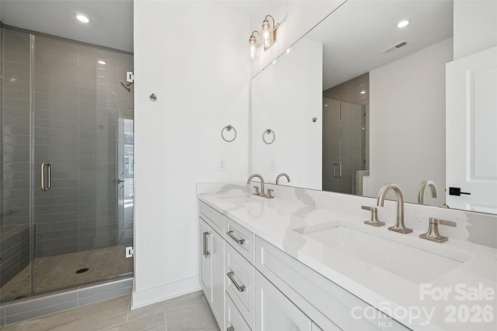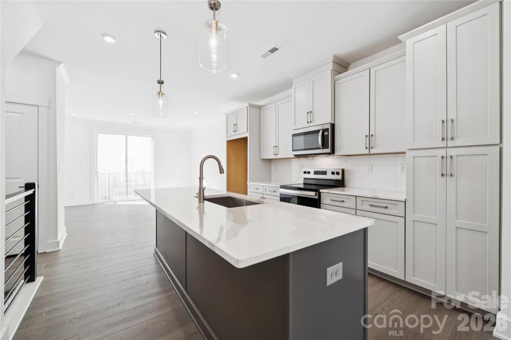 Uptown City Views. Located just minutes from Optimist Hall, less than a mile from the AvidXchange music factory, and only 2 miles from BOA Stadium. Finance incentives available. Iron Creek is a luxury townhome community with an exquisite selection of four-story townhome designs featuring rooftop terraces and 2-car garages. This Dunhill floorplan showcases versatile living spaces designed with your city lifestyle in mind. The main living area is highlighted by a spacious great room, casual dining area, a well-crafted kitchen with access to the outdoor, rear deck, and a powder room for your guests. On the third level, the primary suite is enhanced by a large walk-in closet and a lavish private bath featuring dual vanities and a luxe shower with a bench seat. Adjacent, the guest bedroom features an en-suite bath and roomy closet. The fourth floor has another bedroom perfect for an office with great views from the stunning, rooftop terrace.