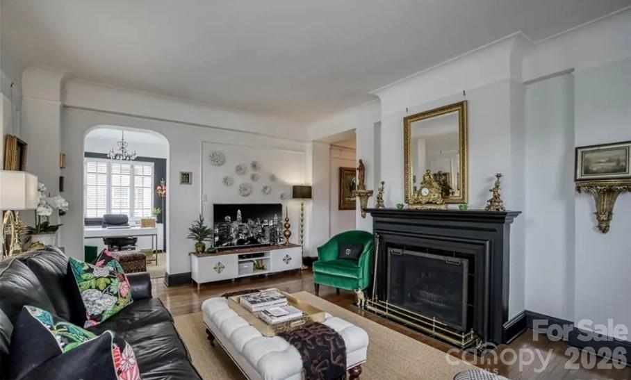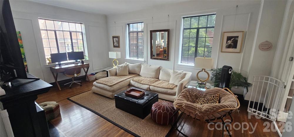 Light filled second floor unit in one of Charlotte's most unique buildings located in the heart of Fourth Ward. Built in 1929 The Poplar is representative of prewar construction found in other great cities. The concrete and steel post and beam construction allows for flexible interior configurations since most walls are not load bearing. The majority of units have been modified to match each owners unique tastes, not cookie cutter floor-plans! A former owner had special clothing needs and converted the second bedroom into an over-sized closet and dressing area. Current owners kept this arrangement but are open to removing the closet walls if buyers prefer. Fireplaces in the building work but sellers make no representation. Recommend buyers engage a chimney sweep after closing and before using. Instant hot water is supplied by gas boilers in the basement and is included in the HOA fee.Each unit has a storage unit in the basement. One parking spot, (unassigned), in the gated parking lot. Basement parking in lieu of the outside lot, when available, is $75 monthly. Permitted Fourth Ward on street parking is available through ParkIt for a nominal annual fee. Common laundry facilities are in the basement.