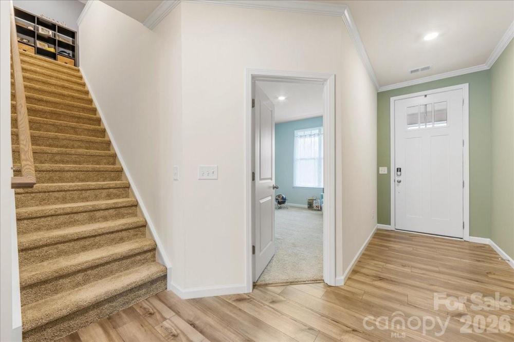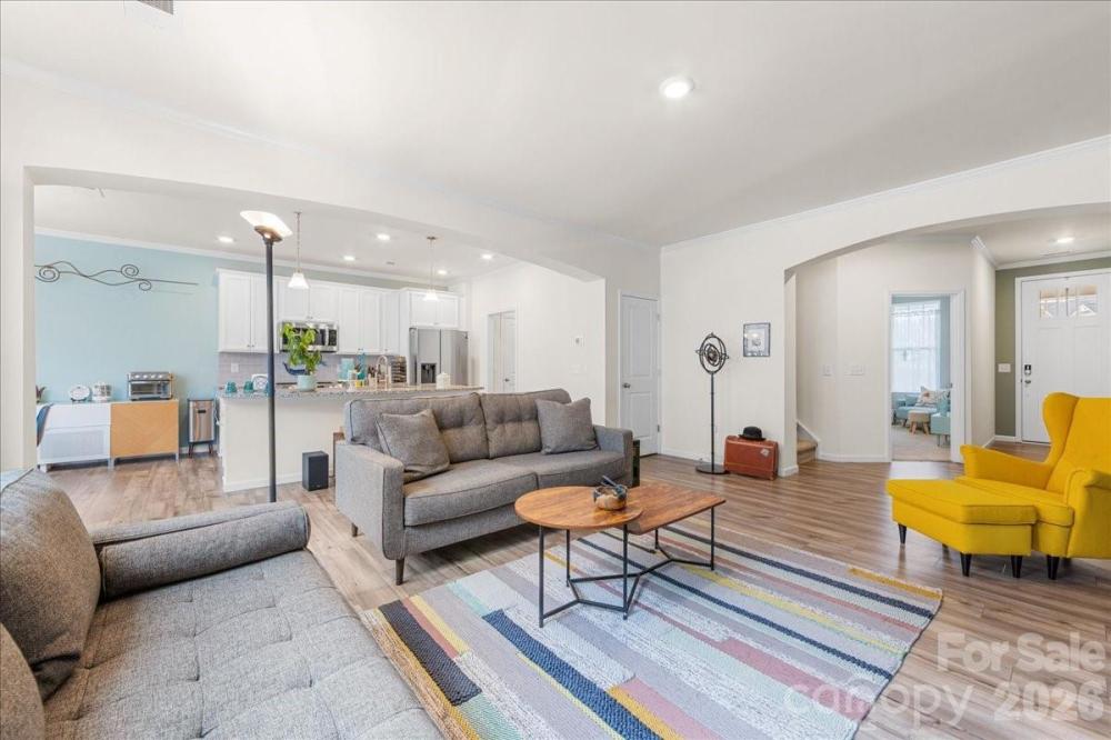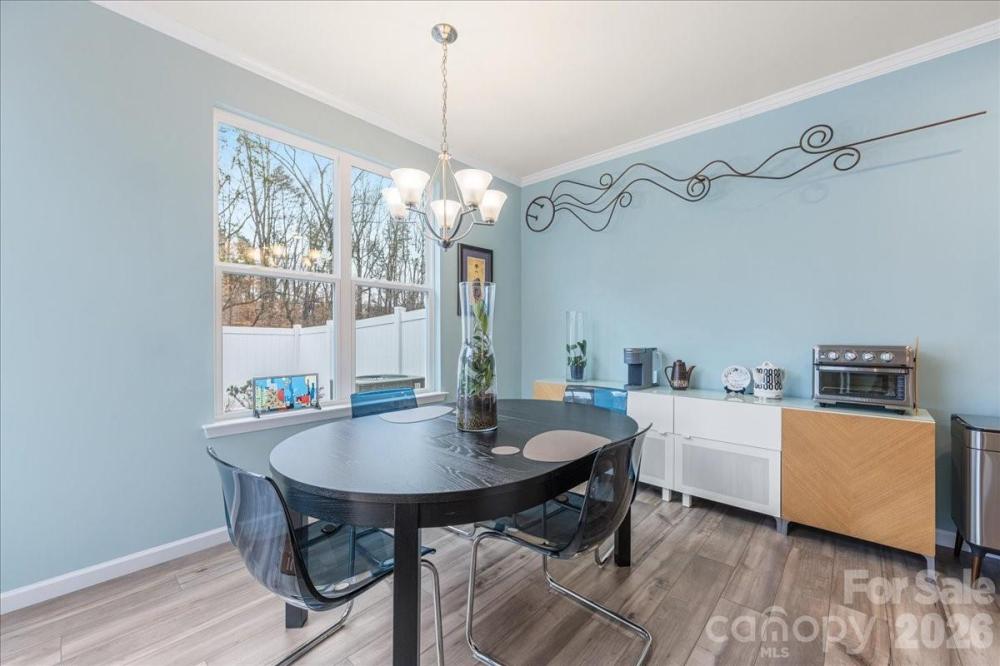 7018 Heron Rookery Way has it all: peaceful wooded views, a private fenced yard, and neighborhood access to Lake Wylie, plus a comfortable and bright interior with sleek finishes and abundant storage. The open concept main living area features 9' tall ceilings and tons of natural light. A wide archway frames the kitchen with a large island, granite countertops, stainless appliances, and a revamped pantry. The adjacent dining area provides ample seating and leads to the backyard oasis with a privacy fence and added paver patio. The main level bedroom makes a great office or flex space. Upstairs, the generous primary suite features an oversized shower, double vanity, and the closet of your dreams. The laundry room conveniently connects to both the primary closet and the common hallway. Two additional nicely-sized bedrooms, a full bathroom, and a large landing/loft complete the upper level. Ideally situated within the community, this townhome provides unbeatable peace and privacy. The Vineyards offers fantastic amenities like lake access, two pools, pickleball courts, and more. Welcome home!