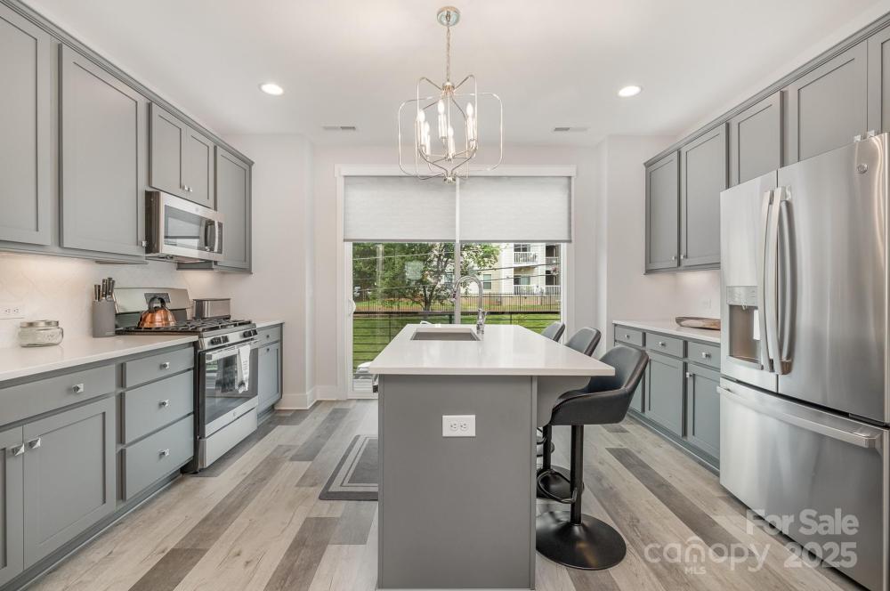 Modern, turnkey 3-story townhome built in 2023 by Empire Communities, offering an exceptional opportunity for both owner-occupants and investors in a prime location just under 2 miles west of Uptown Charlotte. This Cambria C plan features a 1-car garage with private driveway parking and a flexible, thoughtfully designed layout ideal for today’s lifestyle. The first floor includes a versatile flex room and powder bath—perfect for a home office, gym, or secondary living space. The main living level showcases a spacious, open-concept kitchen equipped with GE stainless steel appliances, gas range, counter-depth French door refrigerator, gray painted cabinetry, quartz countertops, and a large island with a built-in double trash pullout. Sliding glass doors extend the living space outdoors to a private terrace off the kitchen, ideal for entertaining or everyday enjoyment. Both bedrooms are located on the third floor, along with a convenient laundry closet featuring a stackable washer and dryer, which are included. The primary suite offers a private en-suite bath with gray cabinetry, quartz countertop, tiled flooring, and a fully tiled semi-frameless shower. The guest bedroom is served by a well-appointed bath with matching quartz counters, gray cabinetry, and tiled flooring. Additional powder baths provide added convenience for guests. The property is tenant occupied and presents a strong, turn-key investment opportunity. This makes the home especially attractive for out-of-town investors or buyers looking to secure a Charlotte property now while benefiting from rental income and potential appreciation. Ideally located near parks, walking paths, and biking trails, with restaurants, breweries, and entertainment just minutes away, this townhome offers excellent long-term rental appeal in a rapidly growing area. Do not disturb tenant. Showings by appointment only.