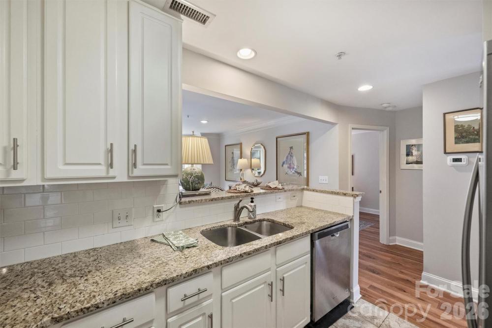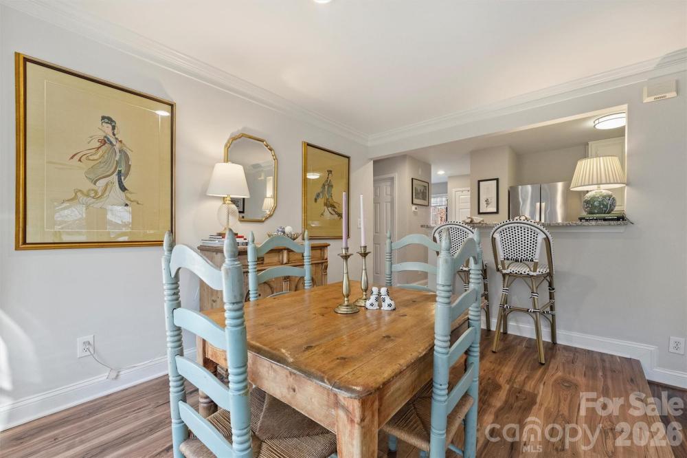 An exceptional Uptown opportunity—rarely available in this Third Ward niche garden-like complex. Tucked into a quiet corner of Uptown, just steps from the Panther's Stadium and bordering beautiful Frazier Park/the Greenway, this renovated second-floor condo with outdoor patio offers the best of center city living with the ability to truly retreat. Within walking distance to the Knights & Panthers stadiums, Community Matters Coffee, Clutch Kitchen, public transportation, and everything Uptown has to offer, the location is as convenient as it is peaceful. The two-bedroom layout is thoughtfully designed with an open floor plan, generous storage, and exceptional natural light streaming through large windows. The updated kitchen features stainless steel appliances, granite countertops, white cabinets, while wood and tile flooring add warmth throughout. Custom designer wallpaper brings a curated, elevated feel, and the private porch—accessible from both the living room and the primary bedroom—creates a rare indoor/outdoor connection in the heart of the city. Quiet, stylish, and truly rare to find, this move-in-ready Uptown condo is a standout offering in one of Charlotte’s most desirable pocket locations. With no rental cap and only a 7 day lease minimum, this property offers huge investment flexibility and opportunity for homeowners. 2 Parking Passes convey at Closing!