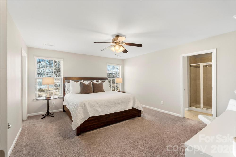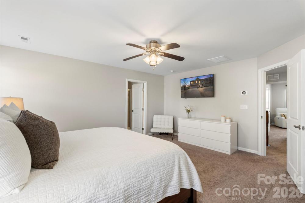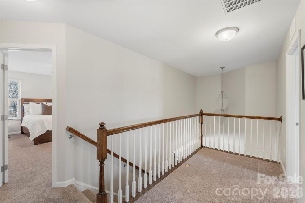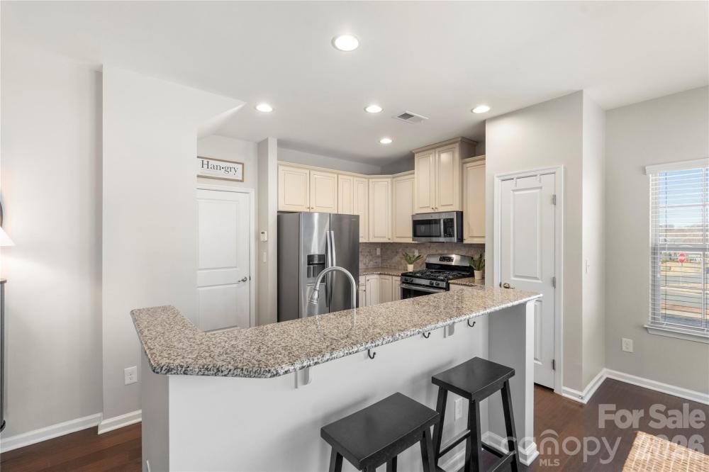 Welcome home to the beautifully maintained end-unit townhouse situated on a desirable corner lot, offering 3 bedrooms and 2.5 bathrooms. The thoughtfully designed open floor plan features engineered wood flooring throughout the main living areas and a bright, spacious living room filled with natural light from ample large windows. The kitchen is thoughtfully designed with abundant cabinetry, stainless steel appliances, ample counter space, a dedicated pantry, and a center island with seating, perfect for everyday living and entertaining. The eat-in kitchen flows seamlessly to the outdoor space, making gatherings easy and inviting. There is no lack of storage in this home, the custom shelving unit in the garage adds functionality to ensure there is ample space and storage. Continue on to the primary suite which includes a private ensuite bath with a dual-sink vanity, separate shower, and relaxing soaking tub. Two additional generously sized bedrooms provide flexibility for guests, home office, or hobbies. Enjoy outdoor living with a large backyard and extended patio—ideal for relaxing or entertaining. A wonderful blend of space, comfort, and convenience in an end-unit setting. All of this plus the can't miss location just moments from Legion Brewing, Pinky's, Nobel Smoke, Not Just Coffee, and so much more!