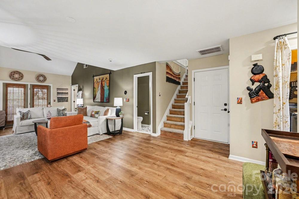 This beautiful, renovated, turn-key end-unit townhome has a primary bedroom and full bathroom on the main floor in the desirable Holly Ridge community. This home features an open floor plan with newly installed LVP flooring, new carpet, new light fixtures, custom blinds, and new window treatments throughout. The large loft area adds flexible living space, perfect for a home office, media room, or guest area. The kitchen is equipped with all new appliances, making this home truly move-in ready. Recently renovated and ideally located with easy access to I-485 and I-77 (just a five-minute drive), and close to grocery stores, shopping, and dining. Minutes from the new River Bend Complex offering medical facilities, pet care, grocery, and dining options. Enjoy nearby Mountain Island Lake, the U.S. National Whitewater Center, Latta Nature Preserve, and the Carolina Raptor Center. Holly Ridge community amenities include a pond with walking trails, a pool, ample guest parking, and HOA-included water, trash, landscaping, and pool access. Just Minutes from Interstate 485 (I-485), giving excellent access to the Charlotte Metro area, Uptown Charlotte, and the Charlotte Douglas International Airport! This end-unit location provides added privacy with only one neighboring unit and extended outdoor space.