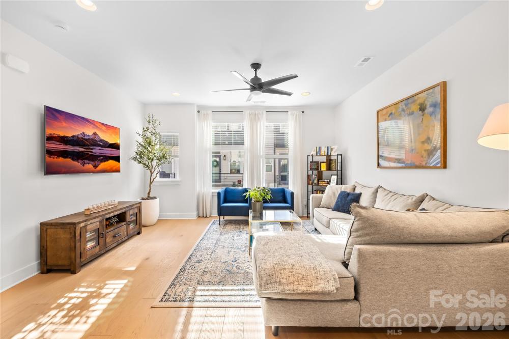 Elevated living meets effortless city access in the heart of Lower South End. Set within the vibrant LOSO Terraces community, this thoughtfully designed townhome offers a refined blend of modern style, comfortable living, and exceptional outdoor space in one of Charlotte’s most dynamic locations. With three bedrooms, two and a half bathrooms, and 1,701 square feet, the home lives beautifully across multiple levels, creating a sense of privacy while still feeling open and connected. The main living level is light-filled and welcoming, designed for both everyday life and easy entertaining. The kitchen sits at the heart of the home, featuring clean-lined cabinetry, stainless steel appliances, and a generous island that naturally draws people together. It flows seamlessly into the dining and living areas, creating a space that feels equally suited for hosting friends or enjoying a quiet night in. Upstairs, the primary suite offers a calm, comfortable retreat with a well-appointed en-suite bath and modern finishes that feel timeless rather than trendy. Additional bedrooms are spacious and flexible, ideal for guests, a home office, or creative space, while maintaining a sense of separation from the main living areas. What truly elevates this home is its connection to the outdoors. A private patio and balcony provide inviting spots to relax throughout the day, while the rooftop terrace delivers a rare and coveted extension of living space. A sunlit top-floor loft opens directly to the rooftop terrace, creating a flexible space that works beautifully as a home office, library, studio, or personal retreat. Whether used for morning coffee, evening gatherings, or simply enjoying the skyline and fresh air, it’s a feature that transforms how the home is experienced. The attached two-car garage adds everyday convenience, and the overall layout reflects a careful balance of function and design. Located just minutes from Lower South End’s restaurants, breweries, and entertainment, with easy access to South End and Uptown, this home offers an ideal mix of energy and retreat. This is an opportunity to own a polished, move-in-ready home that already feels established; one where the finishes, flow, and lifestyle come together effortlessly.