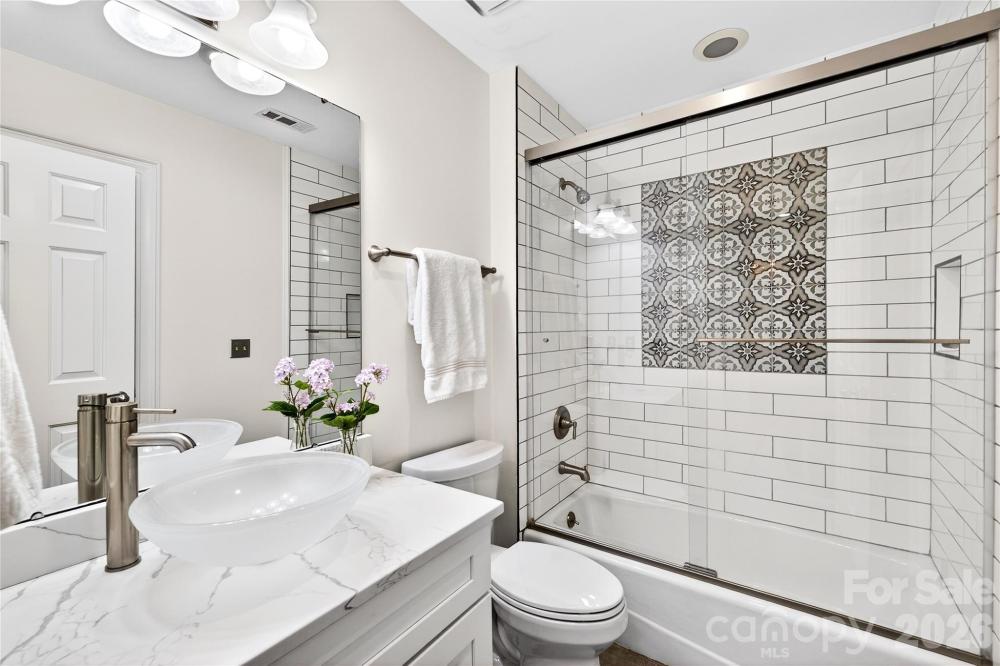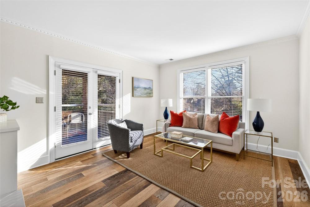 Wonderful opportunity to live in Myers Park, where convenience meets calm. This beautiful full-brick condo places you in the heart of it all while remaining peacefully tucked away from the hustle of Charlotte. Enjoy being less than one mile from Queens University, approximately three miles from the dining and gathering spots of South End, and under four miles from Uptown—all while returning to a quiet, tree-lined setting just down the road from Myers Park Country Club. Easy, move-in-ready living on one main floor. The dining room sits between the living room with a fireplace and the kitchen, which features white cabinetry. The home offers two bedrooms—including a primary bedroom with a walk-in closet—and two fully remodeled full baths. The second bedroom is ideal for a home office or guest space. Light, white interiors, a newer HVAC system, a newer water heater, and thoughtful updates throughout create a fresh, welcoming atmosphere. The laundry room is conveniently located just off the kitchen, with the washer and dryer conveying. Step onto the private balcony from either the living room or the primary bedroom to read, work, or unwind while overlooking the mature, tree-lined street. Parking is simple with an assigned open space in the front, a covered space in the back, and an additional storage unit ideal for bikes and extra belongings. Enjoy easy access to the Little Sugar Creek Greenway, located approximately one mile away. This condo offers comfort, convenience, and an exceptional Myers Park location. To access: enter the building at the front, walk up to level two, and unit D is on the right.