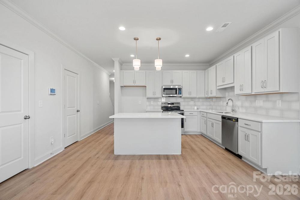 This craftsman-style end-unit home offers modern design and everyday convenience. The open floor plan features a spacious kitchen with large island, maple cabinetry, quartz countertops, tile backsplash, and stainless steel appliances. Upstairs are three bedrooms and two full baths, including a generous primary suite with dual closets and double vanity, plus a walk-in laundry room. This unit includes a fully fenced in private yard with patio and a CPI security system with 12 months of monitoring. And with no HOA dues, plus up to $20,000 in closing cost assistance available with the preferred lender, this is an incredible opportunity in a central, fast-growing location. Enjoy walking to NoDa Brewing Co. and quick access to Camp North End and the shops and restaurants of NoDa!