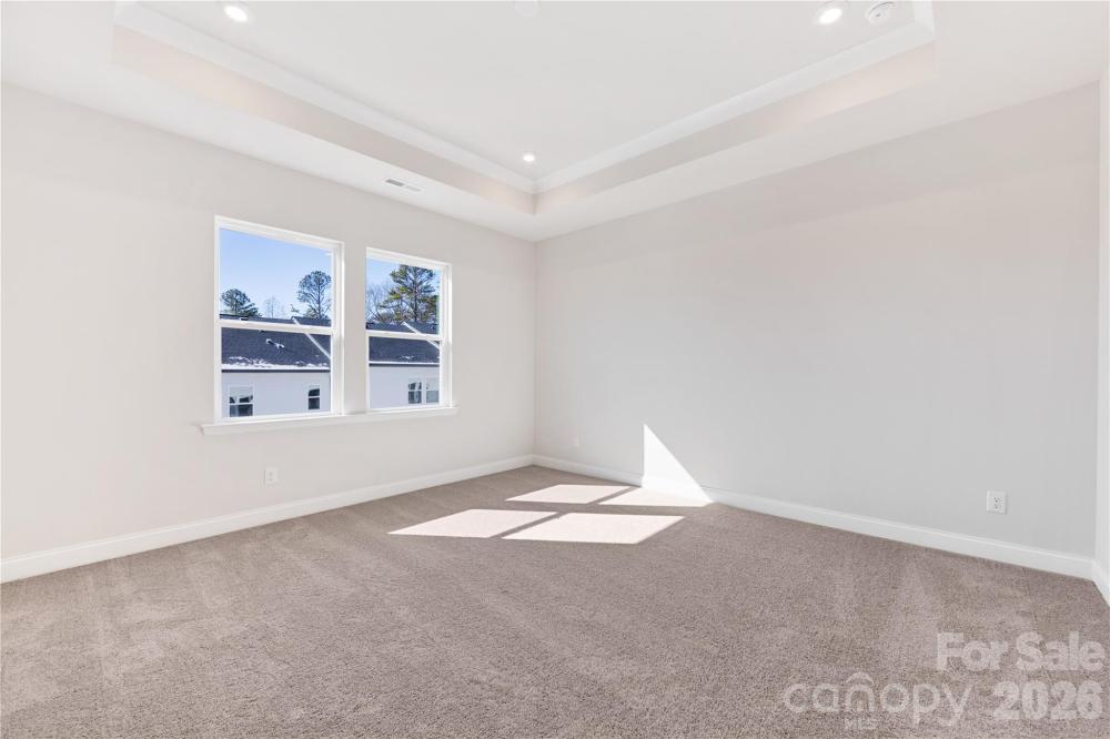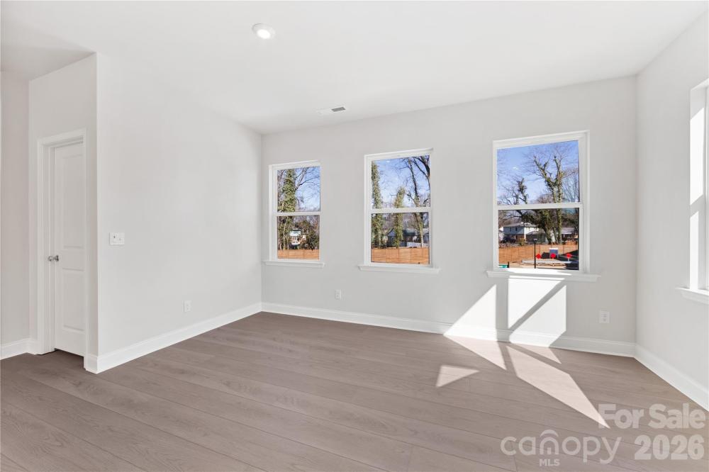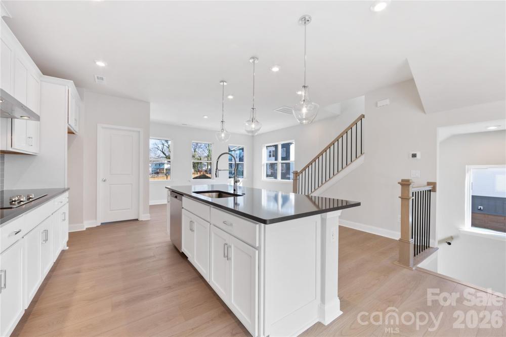 One of the final opportunities to own the Beau home plan in Archer Row, this home is designed for the way life unfolds. Ideally located with guest parking just across the street and a private front entry, it offers both convenience and a sense of arrival from the moment you come home. Inside, premium EVP flooring carries throughout both levels, creating a seamless backdrop for daily living and entertaining. The first-floor flex space with a full bath easily adapts to your needs, whether that’s a home office, guest suite, or creative retreat. At the center of the home, the designer kitchen makes a bold statement with Concrete Grey quartz countertops, crisp white cabinetry, and a striking backsplash, all opening to a spacious great room warmed by a modern electric fireplace. Open rail stairways enhance the airy feel, leading upstairs to an expansive primary suite finished with an elegant tray ceiling, your own quiet place to unwind.