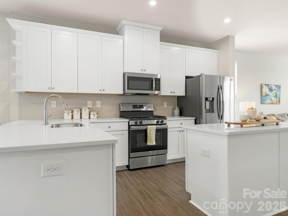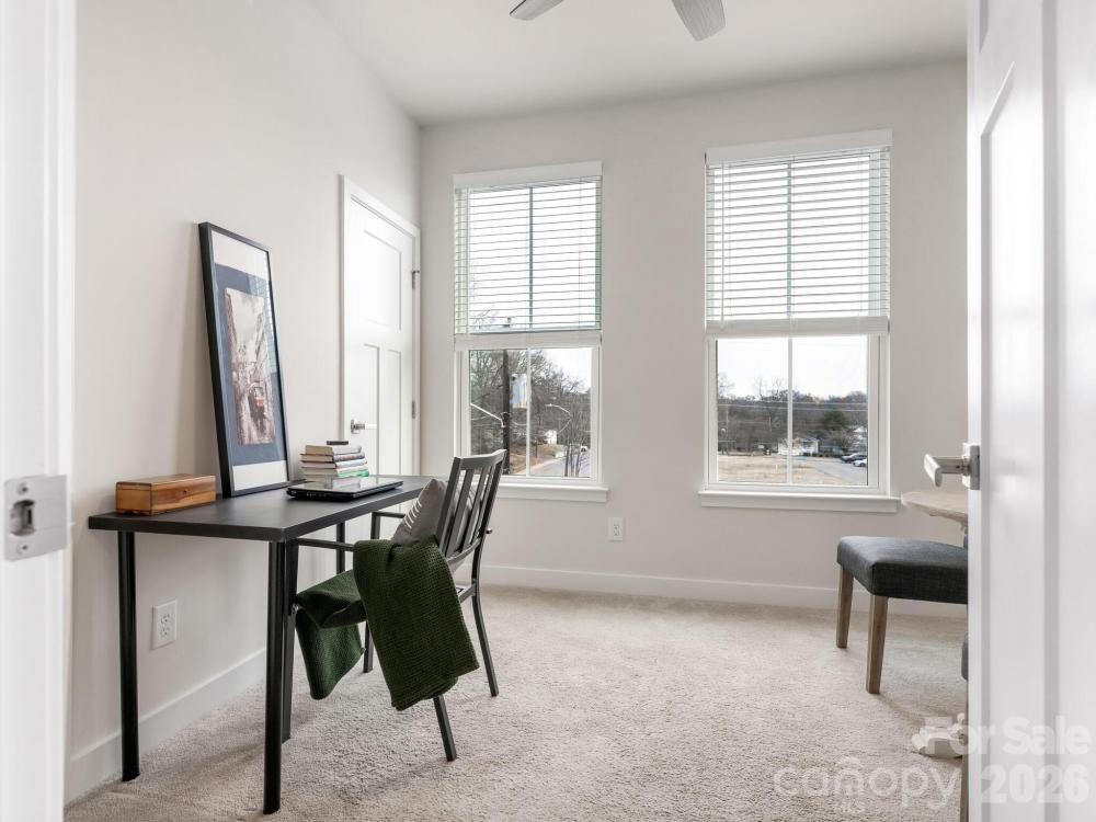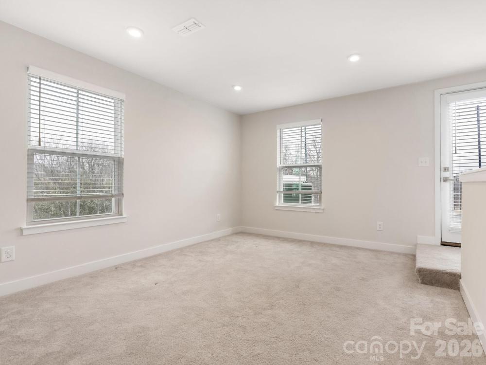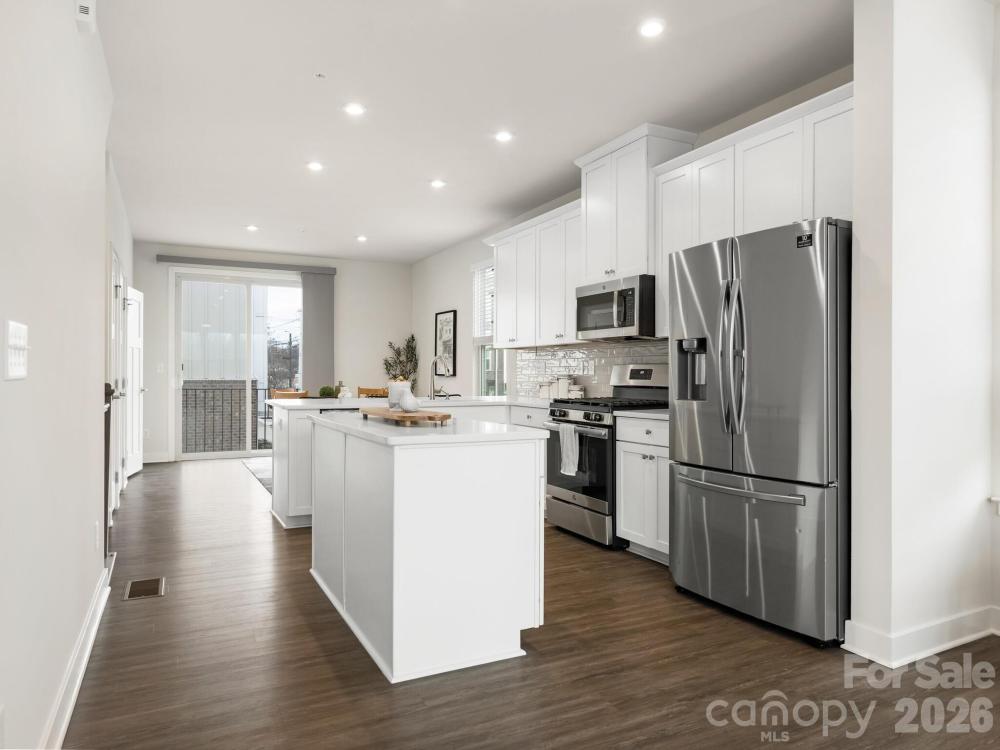 Rare opportunity to own one of the few End-Units with a partial City View in Optimist Park. This multi-story unit has been freshly painted & is ready for a new owner. Main level (2nd floor) features high ceilings with extra windows for a light & bright living space. The large great room with TV mount, ceiling fan & LVP flooring. Cook's kitchen with quartz countertops, gas range, white cabinets, pantry, tile backsplash, eat-at peninsula & an island. Dining area with Juliette balcony. The 3rd floor features the large primary bedroom & a secondary bedroom both with ensuite bathrooms. The fourth floor features the 3rd bedroom, full bath, bonus/loft area & a private rooftop deck with beautiful views. Back-load tandem 2-car garage with finished floor. Centrally located: across from Optimist Hall, minutes from Uptown, near NODA, Light rail access, Greenway access, restaurants & entertainment.