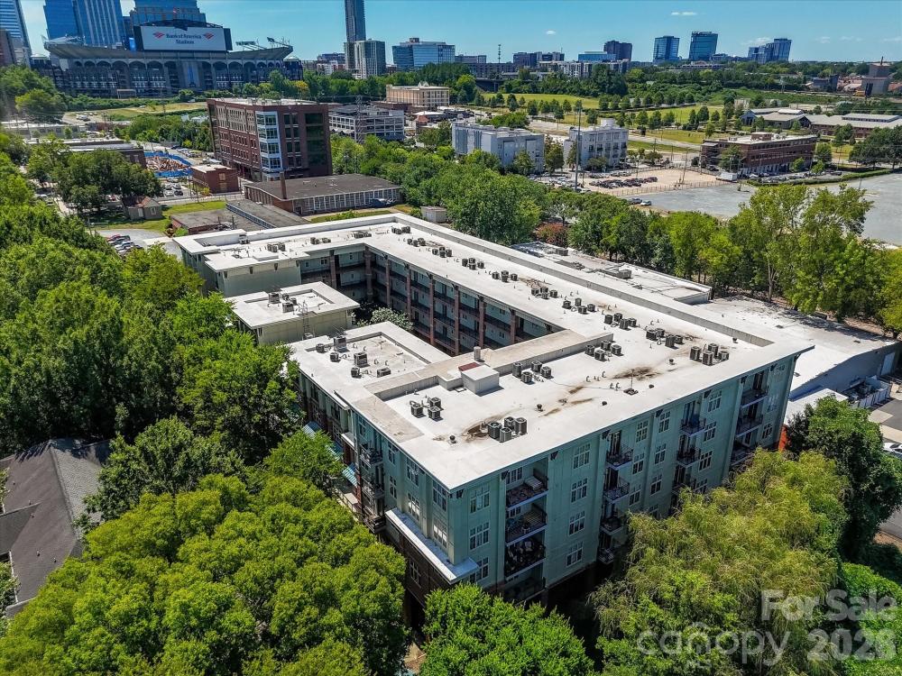 Stunning skyline views and Uptown living at its best at First Row Warehouse. This third-floor 2-bedroom, 2-bath condo offers sweeping views of Uptown Charlotte and Bank of America Stadium from both the living room and primary suite. The open-concept layout features hardwood floors and abundant natural light, while the stylish kitchen includes stainless steel appliances and a breakfast bar. Spacious bedrooms include a walk-in closet in the primary suite and updated tile bathrooms. The second bedroom offers flexibility as a home office, ideal for remote work. Residents enjoy a pet-friendly community, secure building with elevator access, gated garage parking with one assigned space, private balcony, and renovated courtyard with grills and lounge areas. Located in the desirable Third Ward, just steps from Frazier Park, Truist Field, Charlotte FC and Panthers games, and Uptown dining and entertainment, with convenient access to I-77 and I-277. HOA dues are $433 per month; building constructed in 2007. Prime Third Ward Location: Walk to Frazier Park, Truist Field, Charlotte FC/Panthers games, and Uptown nightlife. Quick access to I-77 and I-277. HOA: $433/mo | Built in 2007 | 1 Assigned Garage Space Whether you're a first-time buyer, remote worker, investor, or looking to downsize into low-maintenance city living — this condo checks all the boxes! Schedule your private showing today and experience the view for yourself!