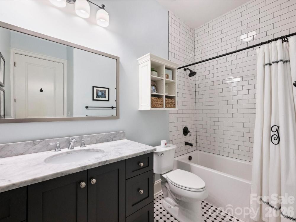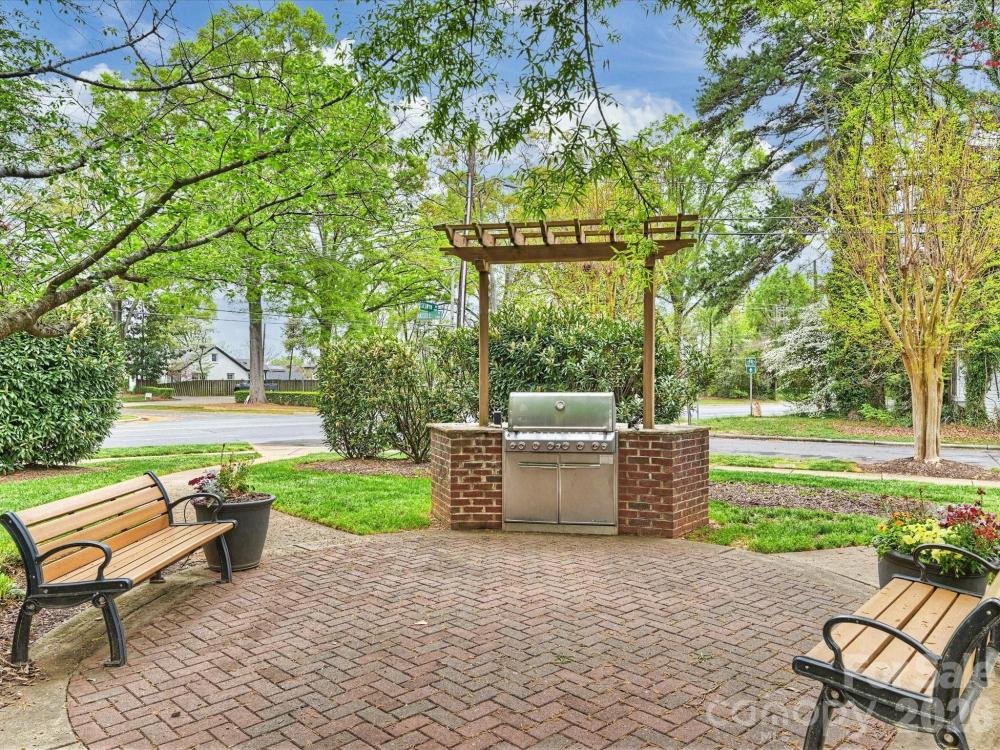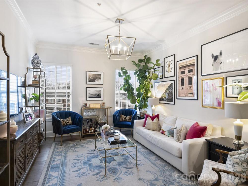 Welcome to this jewel box condo in the heart of Myers Park. This top-floor unit is truly move-in ready, featuring fresh paint, updated engineered hardwoods updated and updated lighting throughout. The eat-in kitchen shines w/ white cabinetry and updated hardware, granite countertops, classic subway tile backsplash, and SS appliances. A spacious dining area makes a statement with stylish accent wallpaper. The refreshed primary bathroom features timeless black-and-white tile, marble countertops, and updated lighting. Retreat to the serene primary suite with soaring ceilings, a whimsical chandelier, and large custom closet w/ built-in cabinetry. The thoughtfully updated laundry room offers extensive cabinetry for exceptional storage. Seller added Indow window inserts in living room/bedroom windows which reduce noise, provide significant thermal insulation. Live in the center of it all—just blocks from Park Road Shopping Center, Selwyn Pub, Reid’s, The Jimmy, Rada, and more.